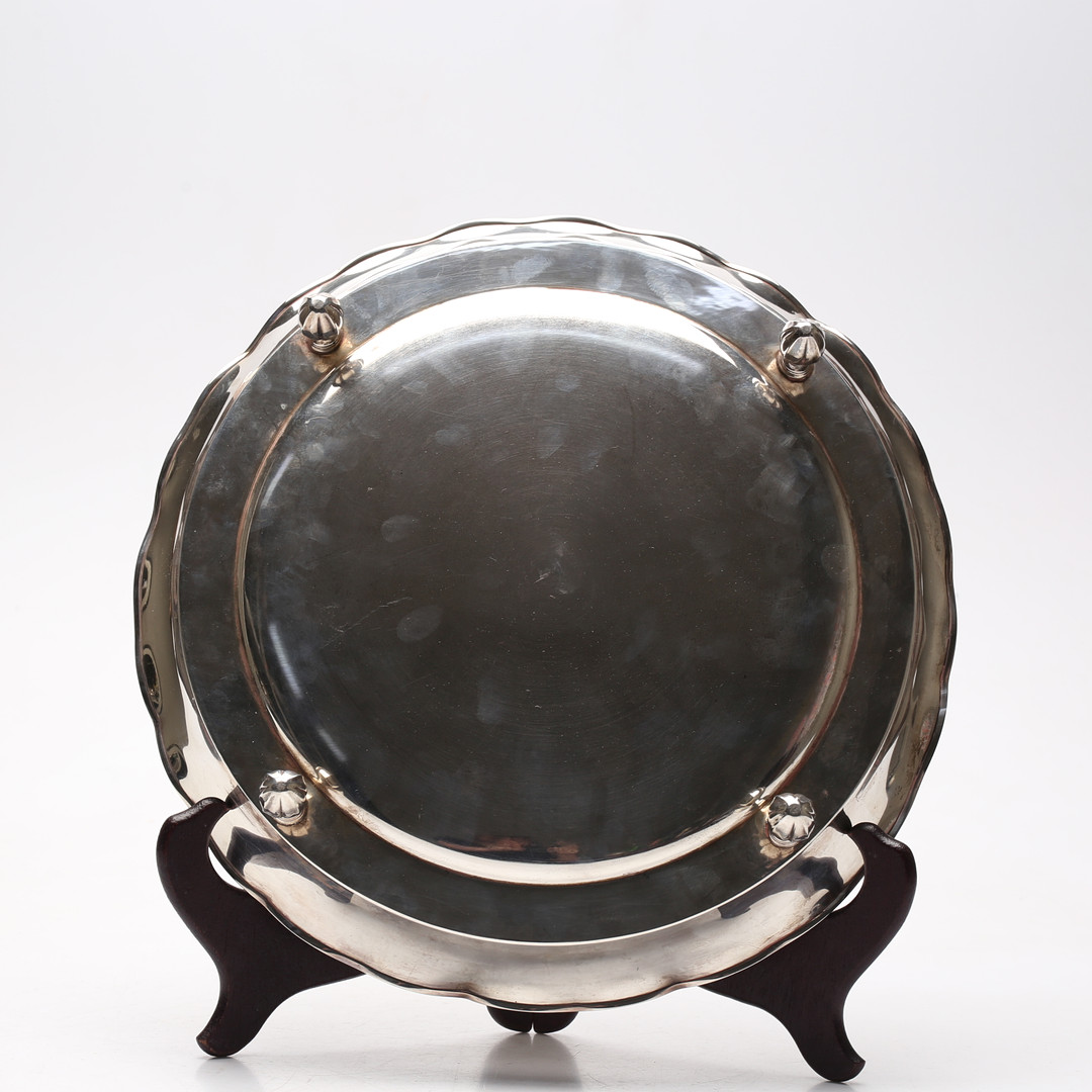 3970120. BAKKE på fødder, sølv, 20. årh.