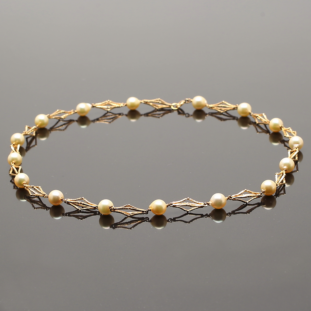 397315. PERLEKALDE med rødguld foldet tot. 20,48 g.