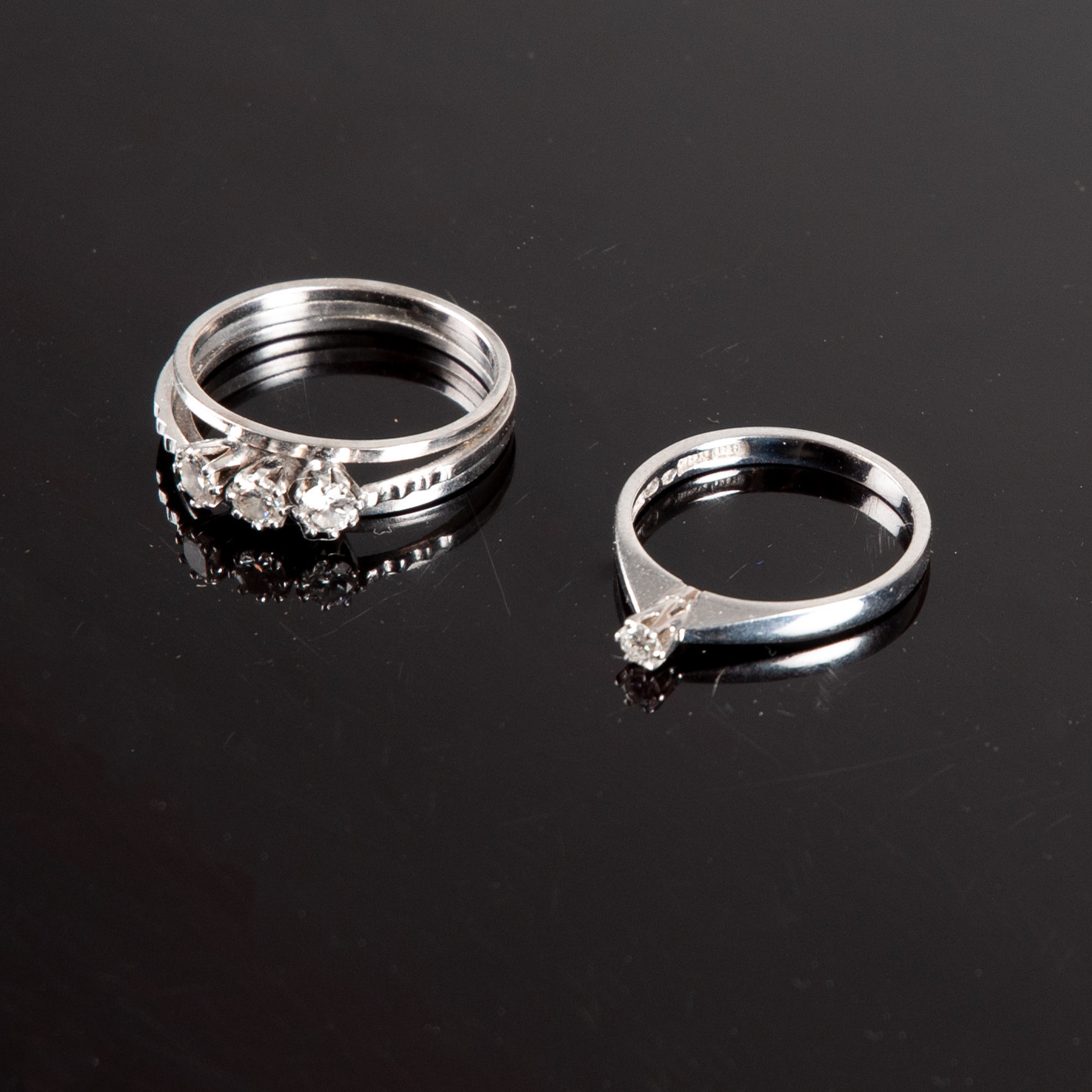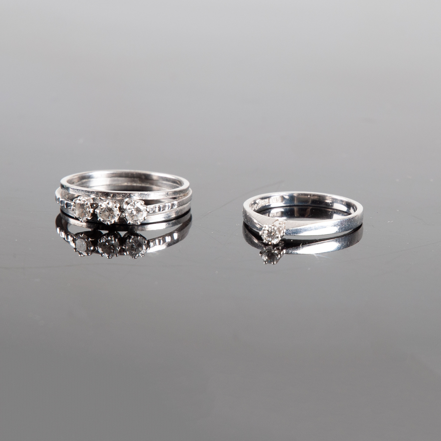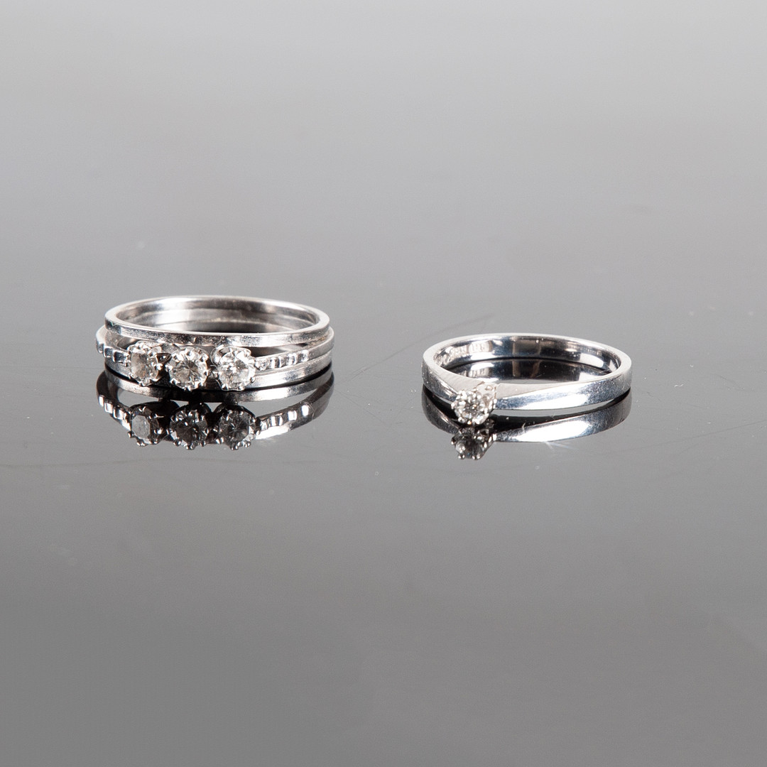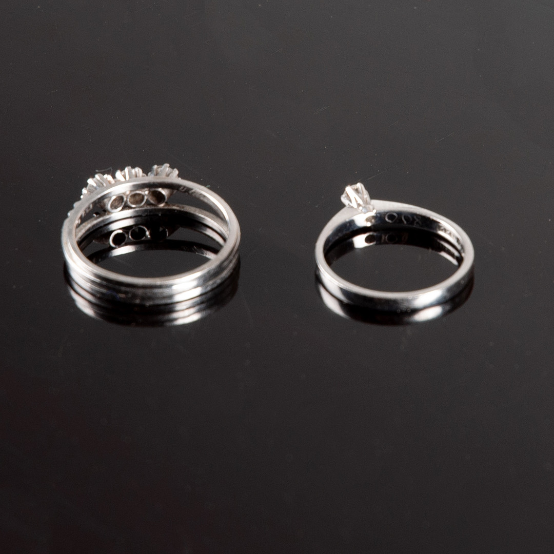 3974983. RING, 2 stk, 18 kt hvidguld, 3.57 og 2.29 g.