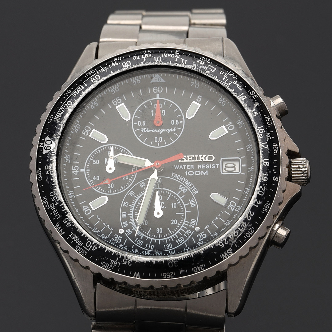 3976434. ARMBÅNDSUR, Seiko, „Flightmaster Pilot“, Kronograf 100M, stål.