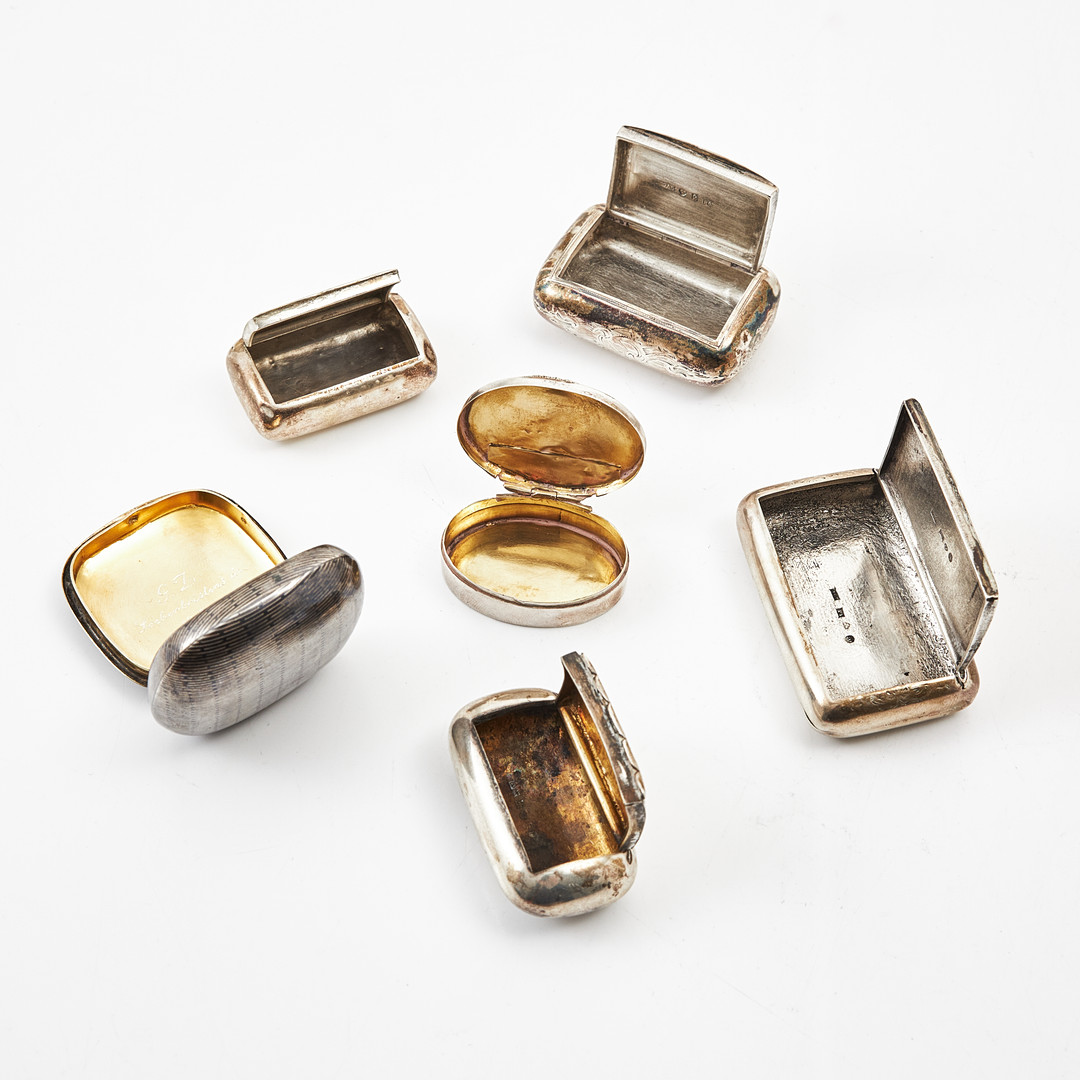 3978362. Pilleskasser, 6 stk., 1700-/20. århundrede, sølv.