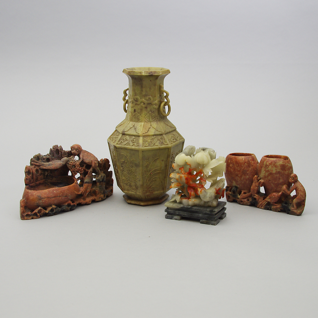 397922. VASER OG SKULPTUR, Kina, bl.a. fedtsten, 20. århundrede.