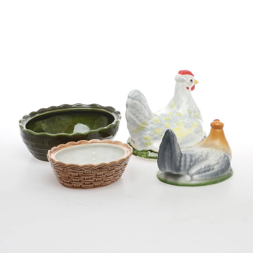 397980. ÆGGEHØNNER, 2 stk. keramik, 20. århundrede.