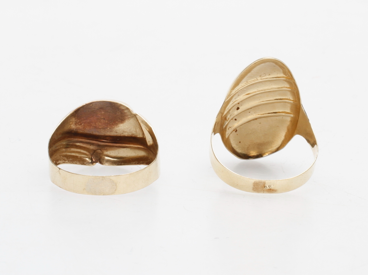 398292. RINGE, 2 stk, 14k guld, vægt ca 3,2 gr.