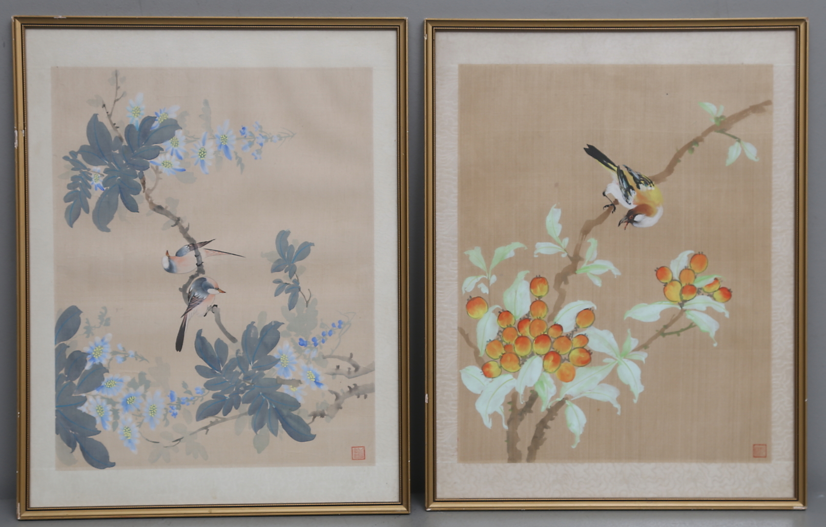 398486. OIDENTIFIERAD KONSTNÄR. Silkemaleri, 2 stk, signeret.