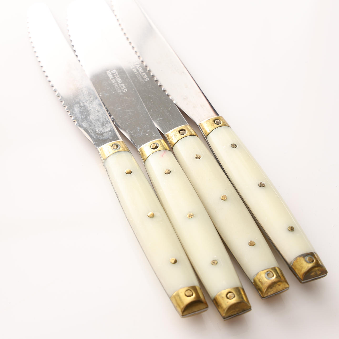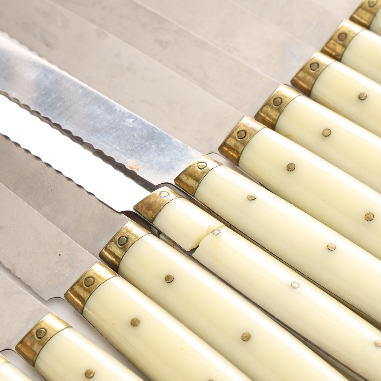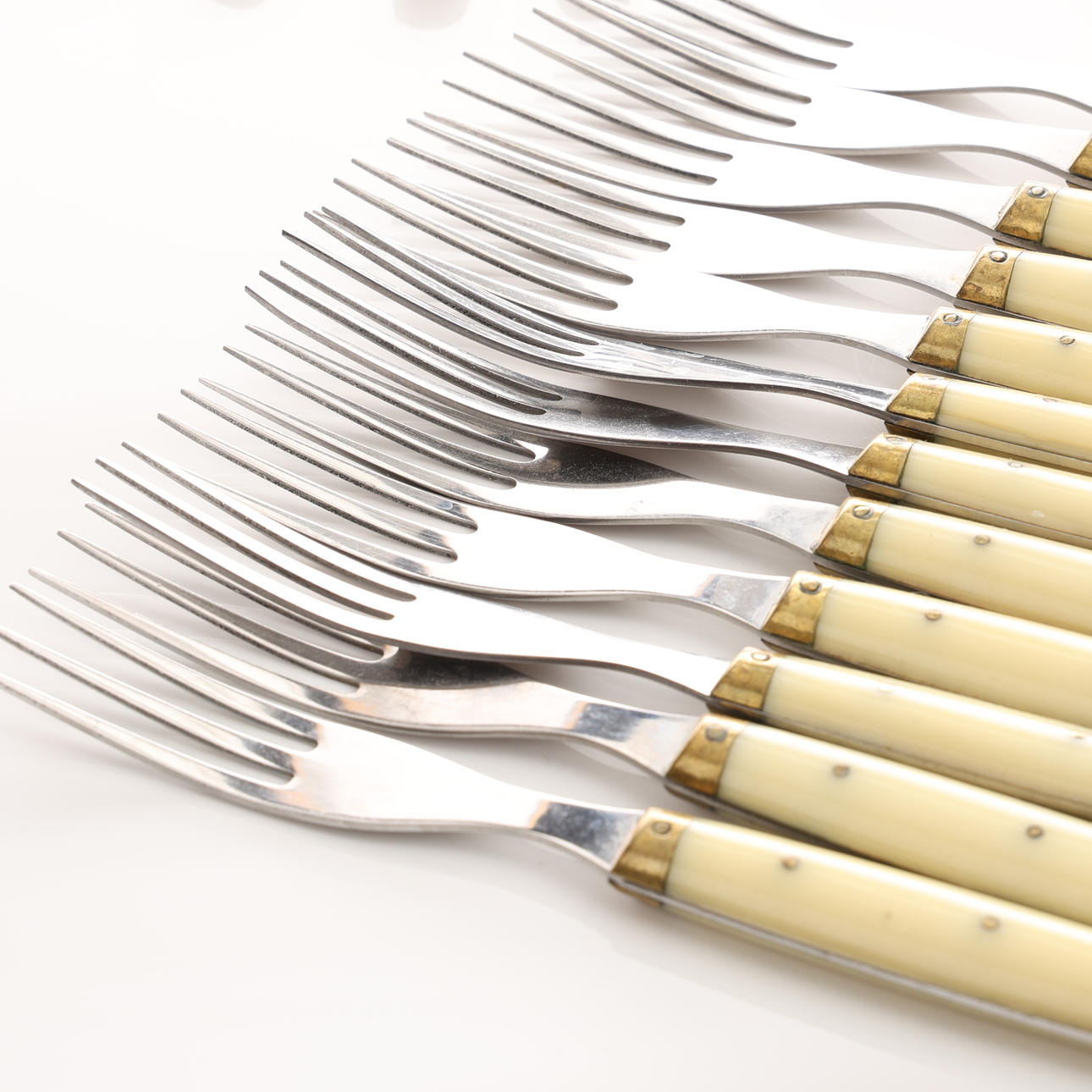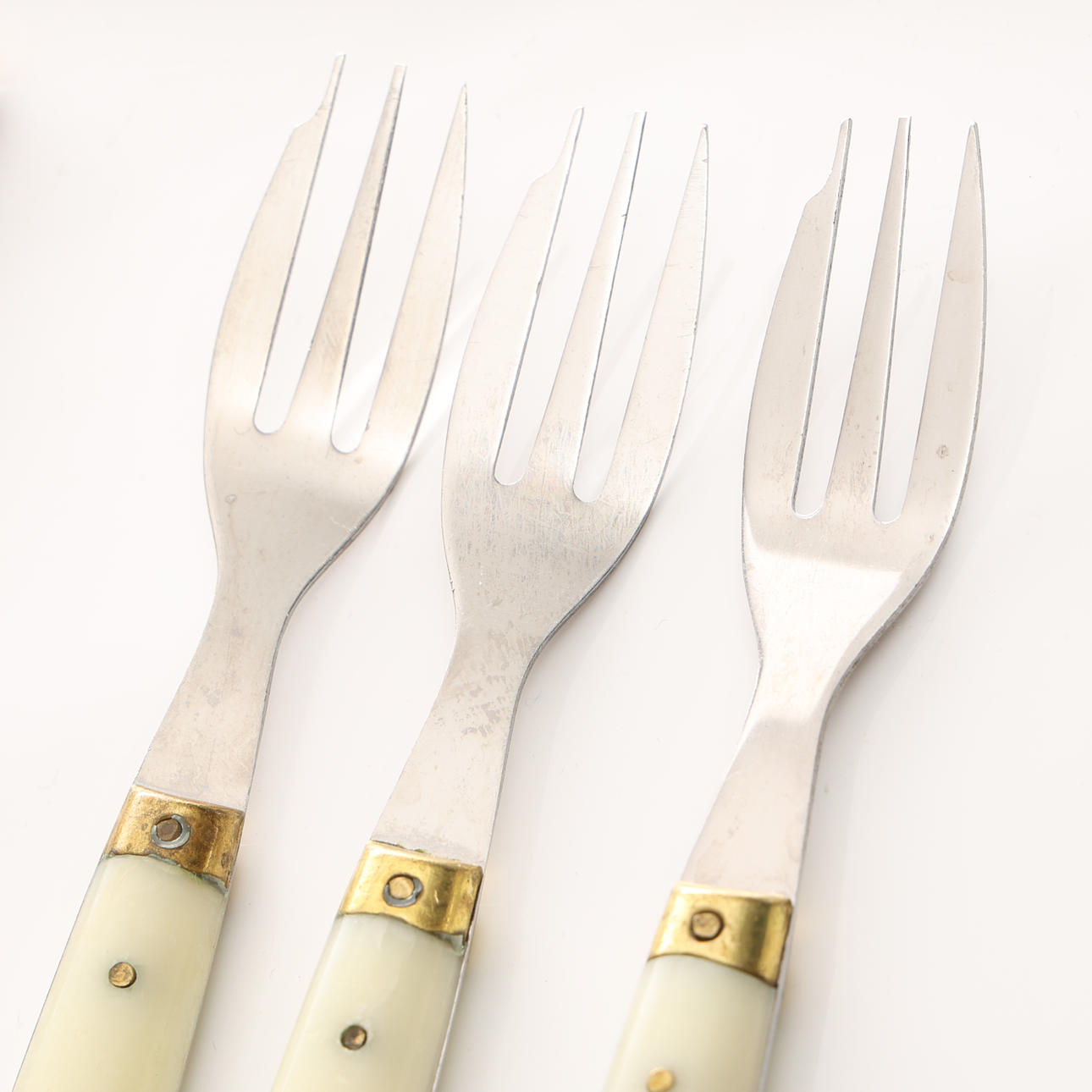 12 knive, længde 23 cm. 14 skeer, længde 19,5 cm. 12 gafler, længde 19,7 cm. 4 knive, længde 16,5 cm. 3 gafler, længde 15 cm.