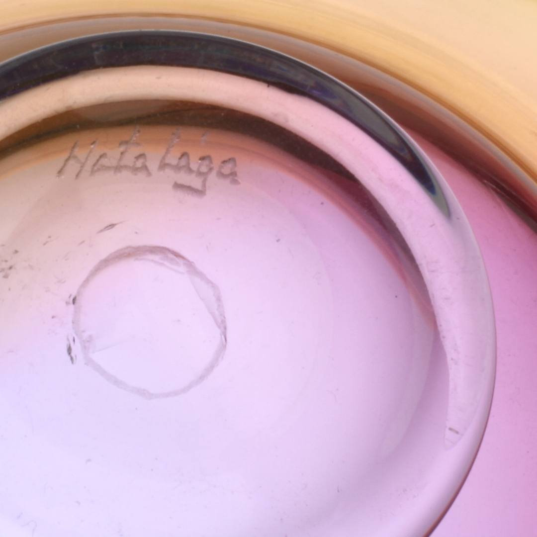398923. KUNSTGLAS, 3 dele, Varm flamme, sign.