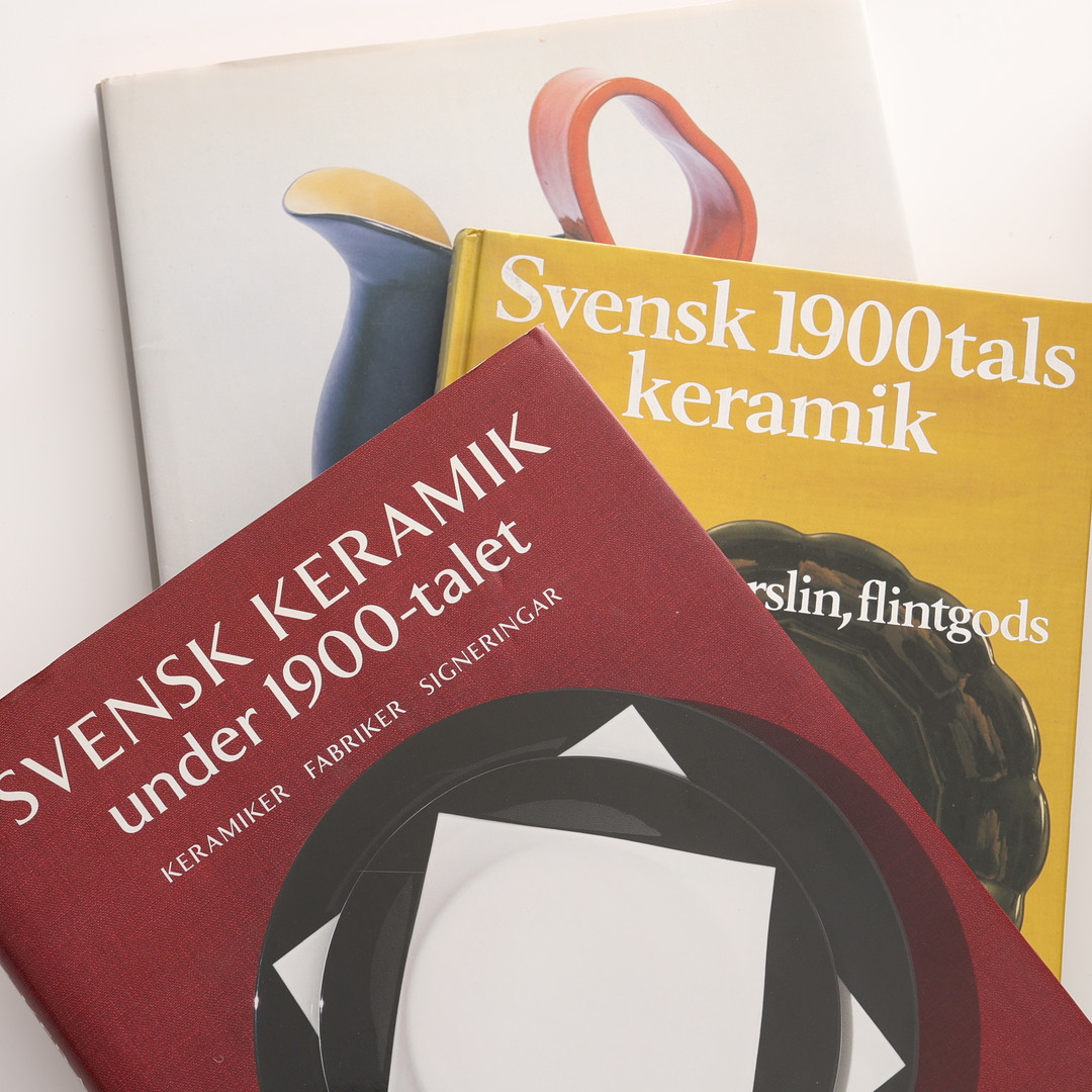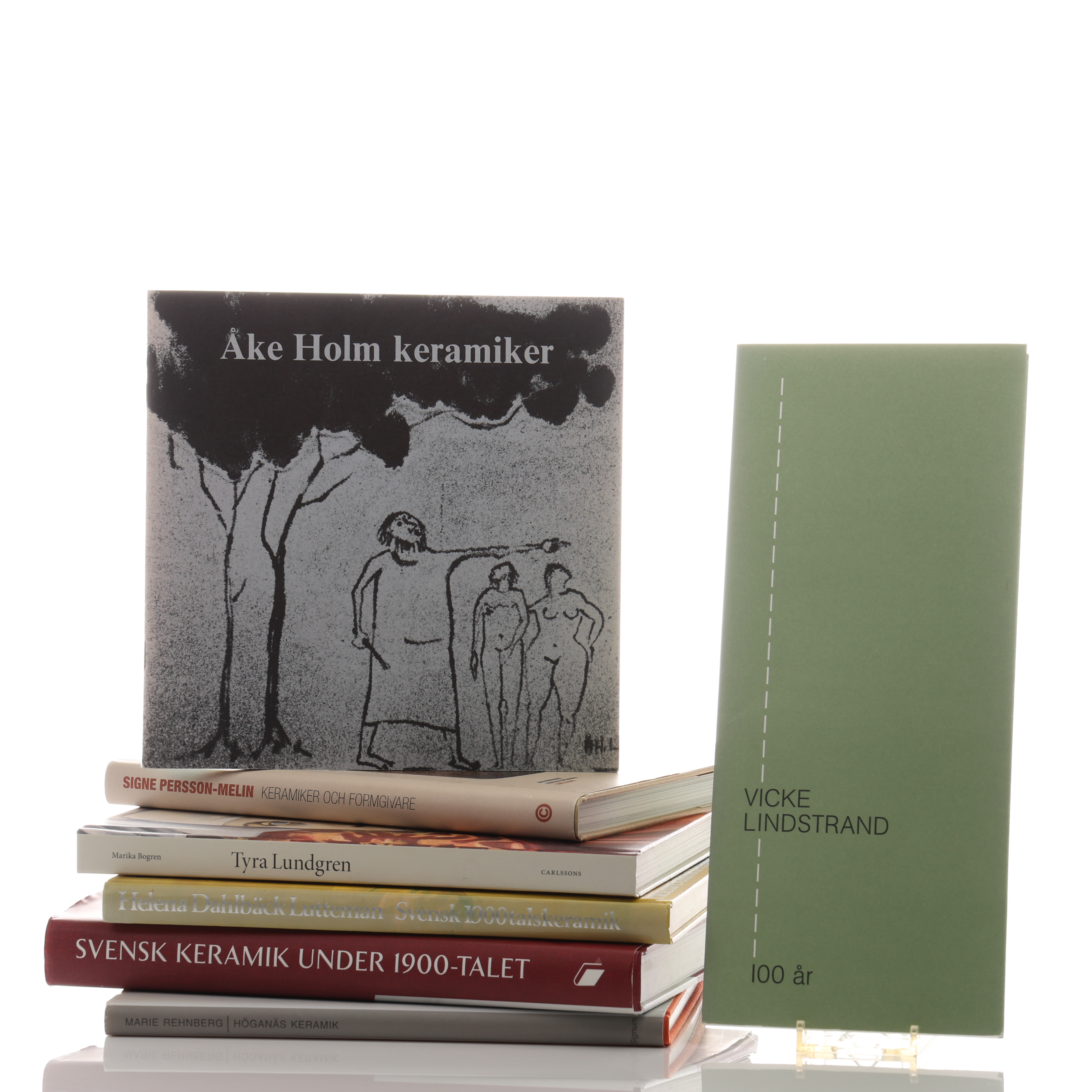 3991239. En samling bøger, 8 stykker, svensk keramik.