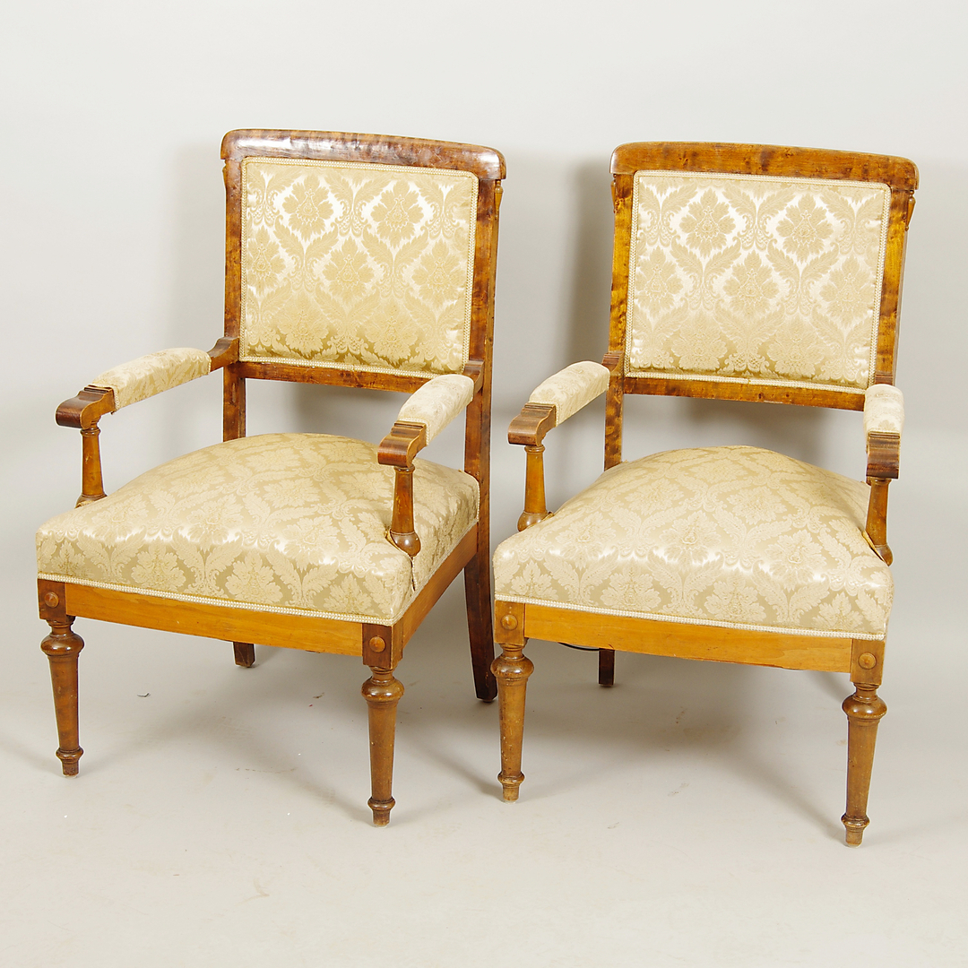 399230. LÆNESTOLE, 1 par, birk, 1880'erne.