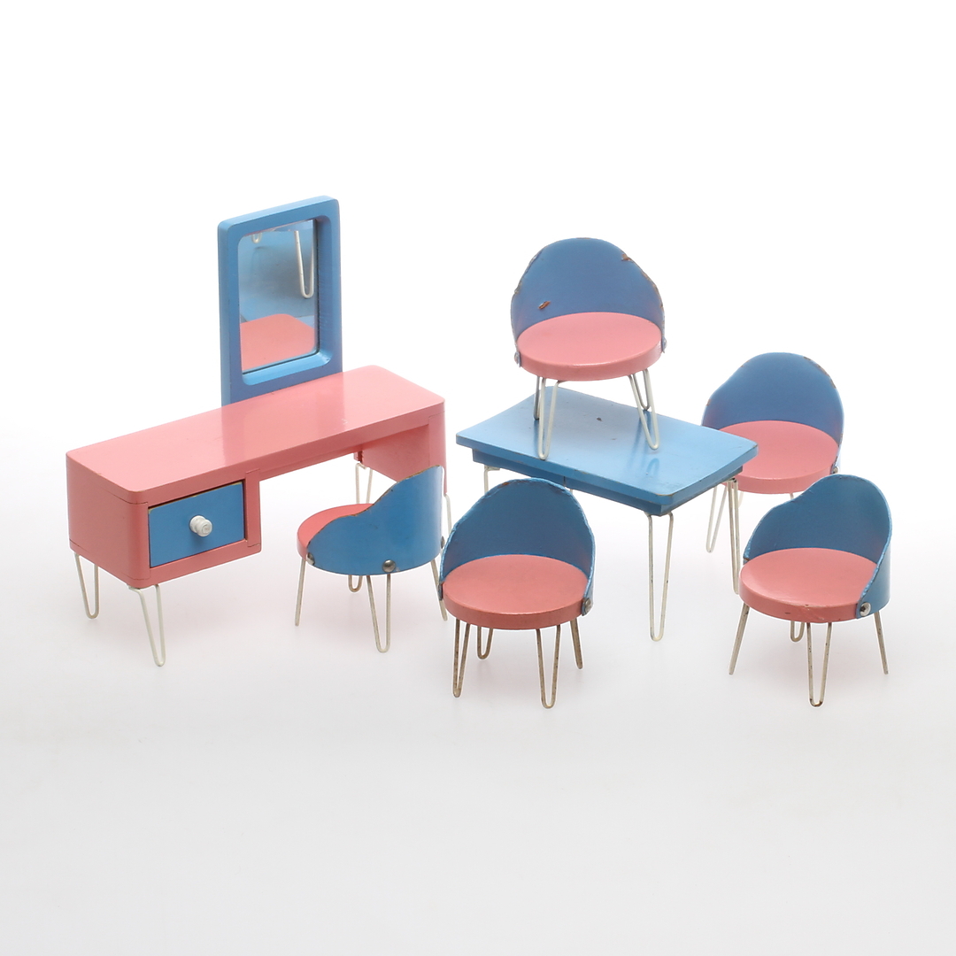 399668. DUKKE MØBLER, 7 dele, Leko Gemla, 1900-tallet.