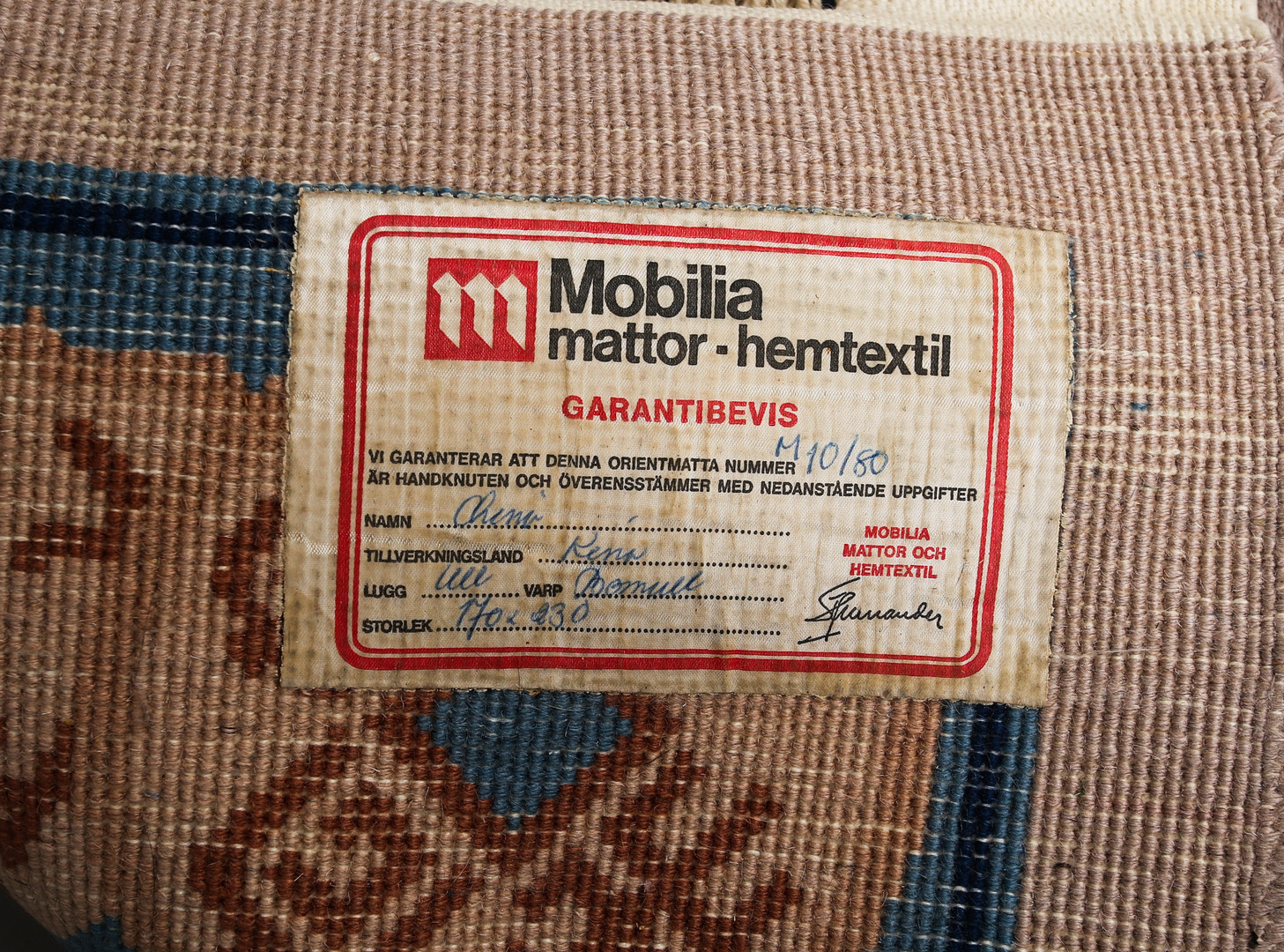 3997609. TÆPPE håndbundet, bomuld, Kina.