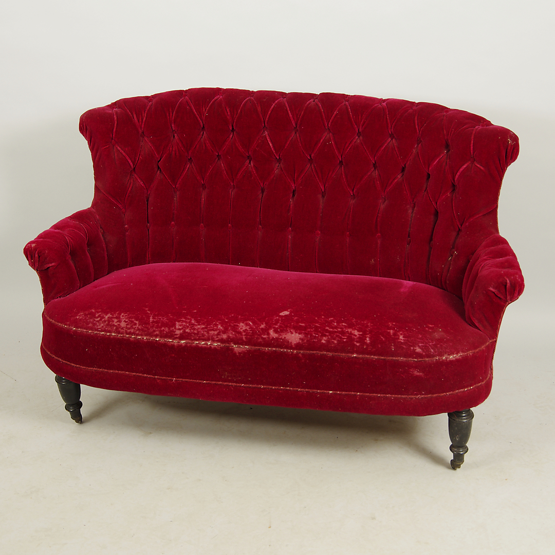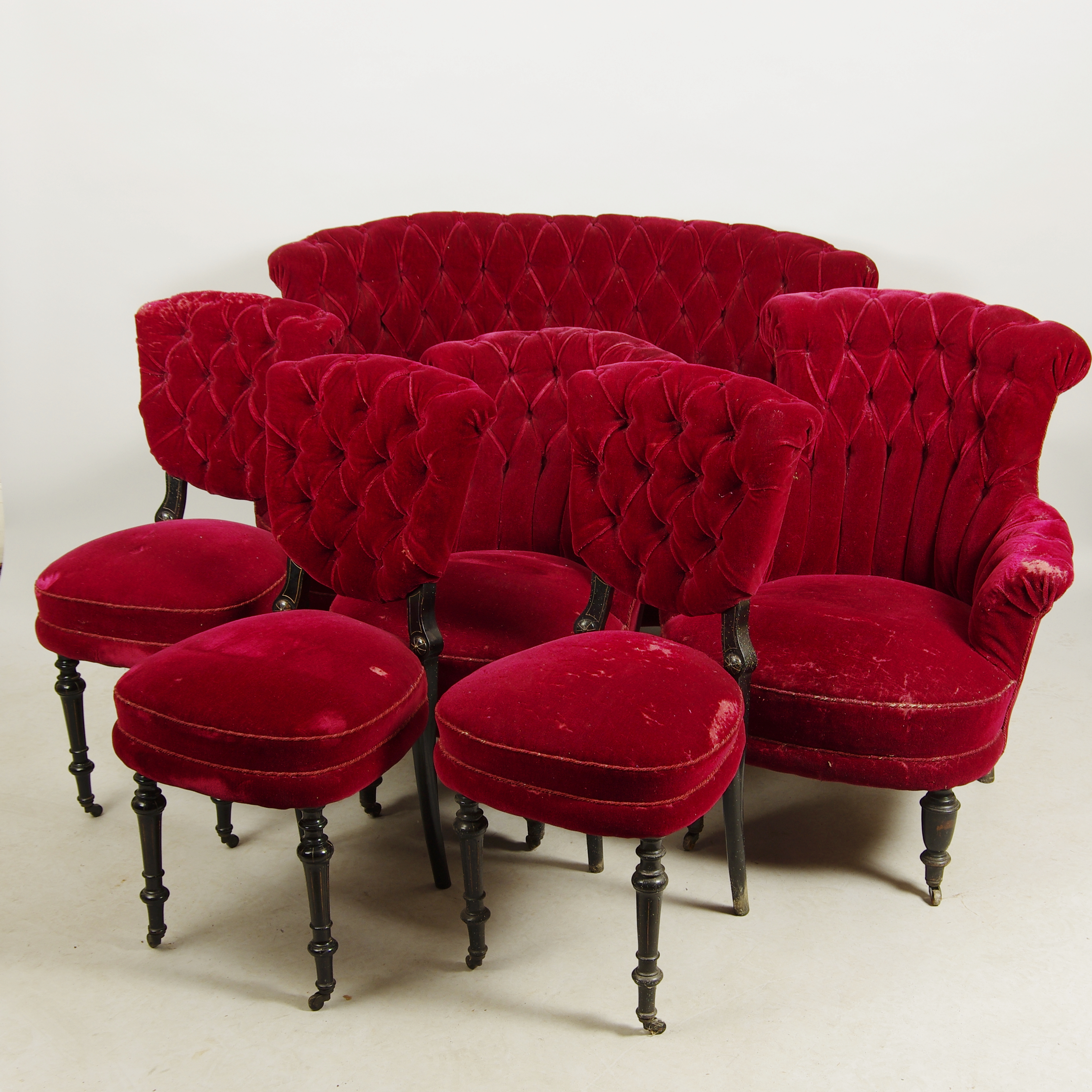 399835. SOFAGRUPPE, rød plys, polstermodel.