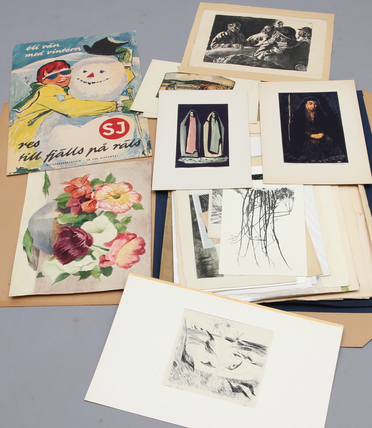39989. GRAFIK, tegninger, plakater mm., oramat.