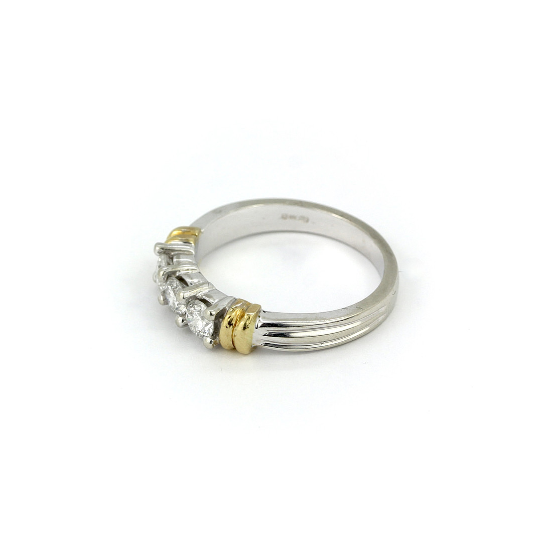 3999731. 18KT HVID OG GUL RING MED DIAMANTER.