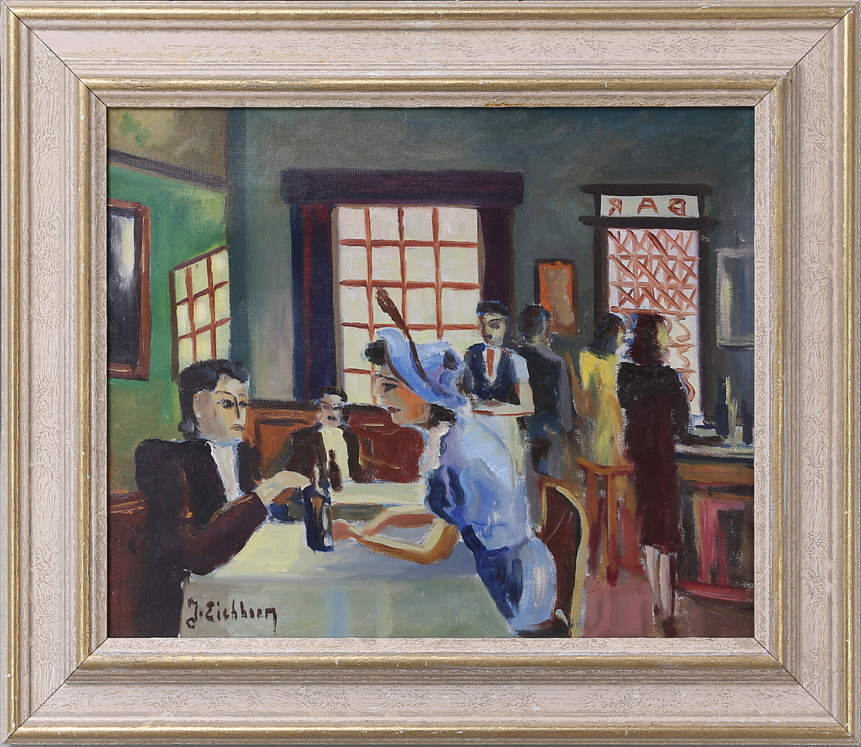 400201. JACK EICHBORN. Cafe interiør, olie på lærred, signeret.