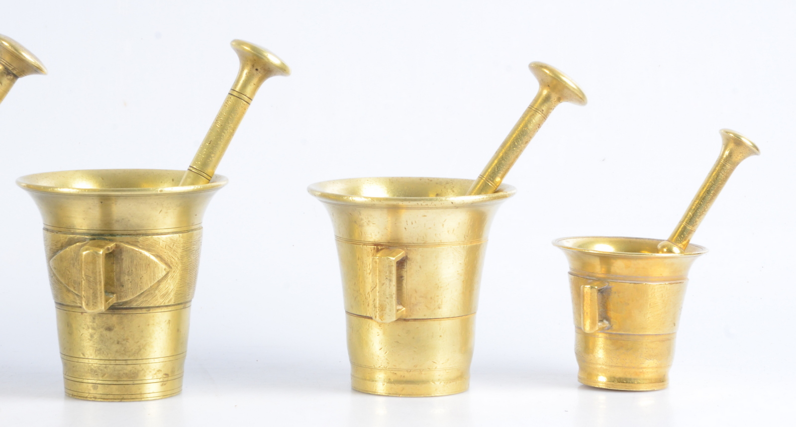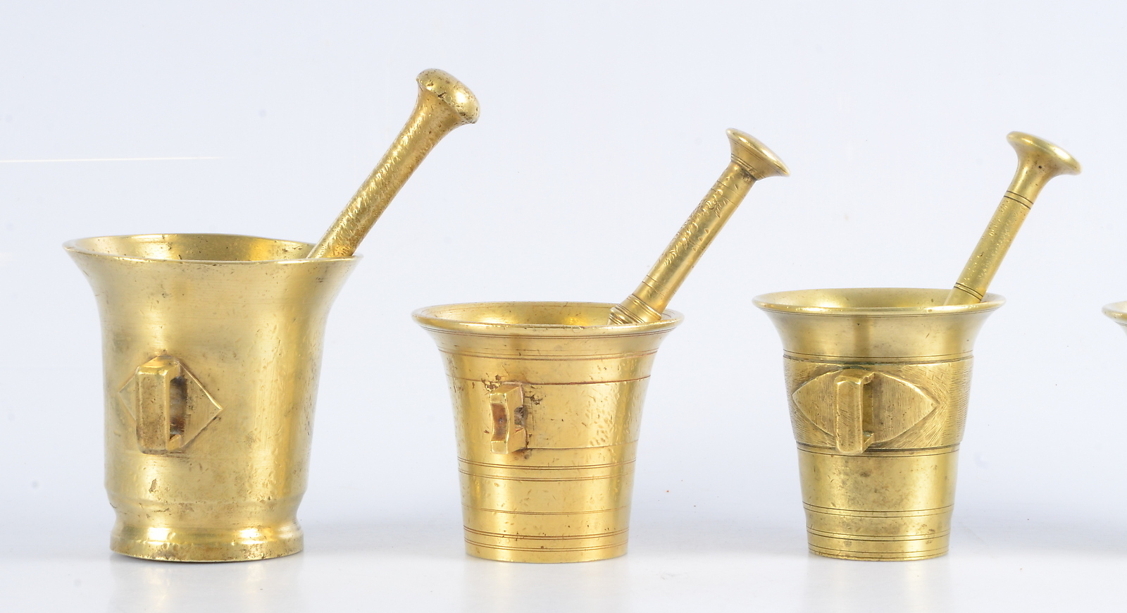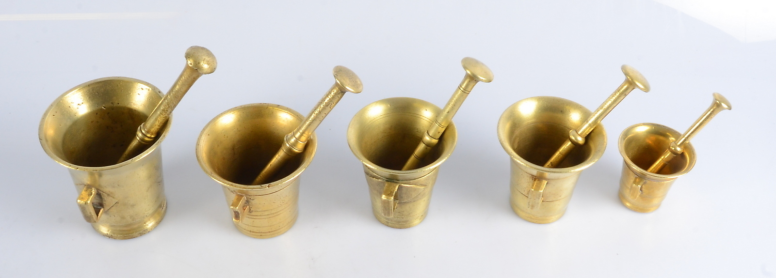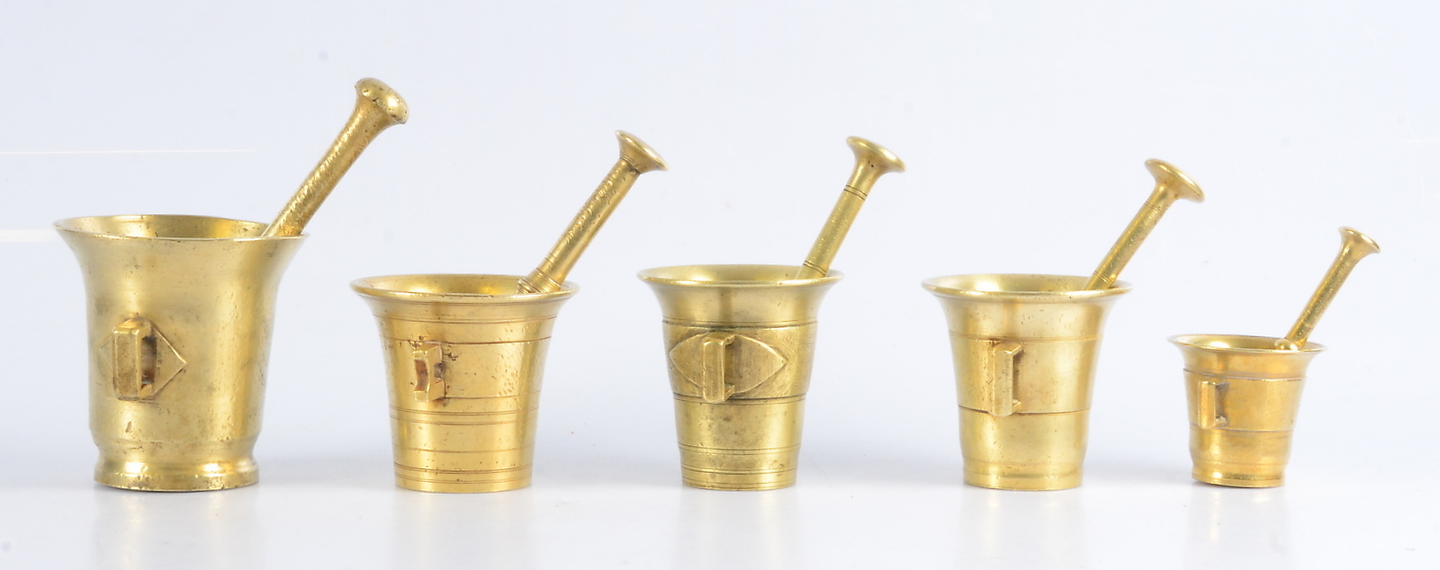 400678. MØRTER, 5 stk., messing, 1800-tallet.