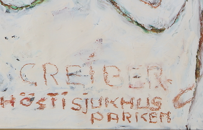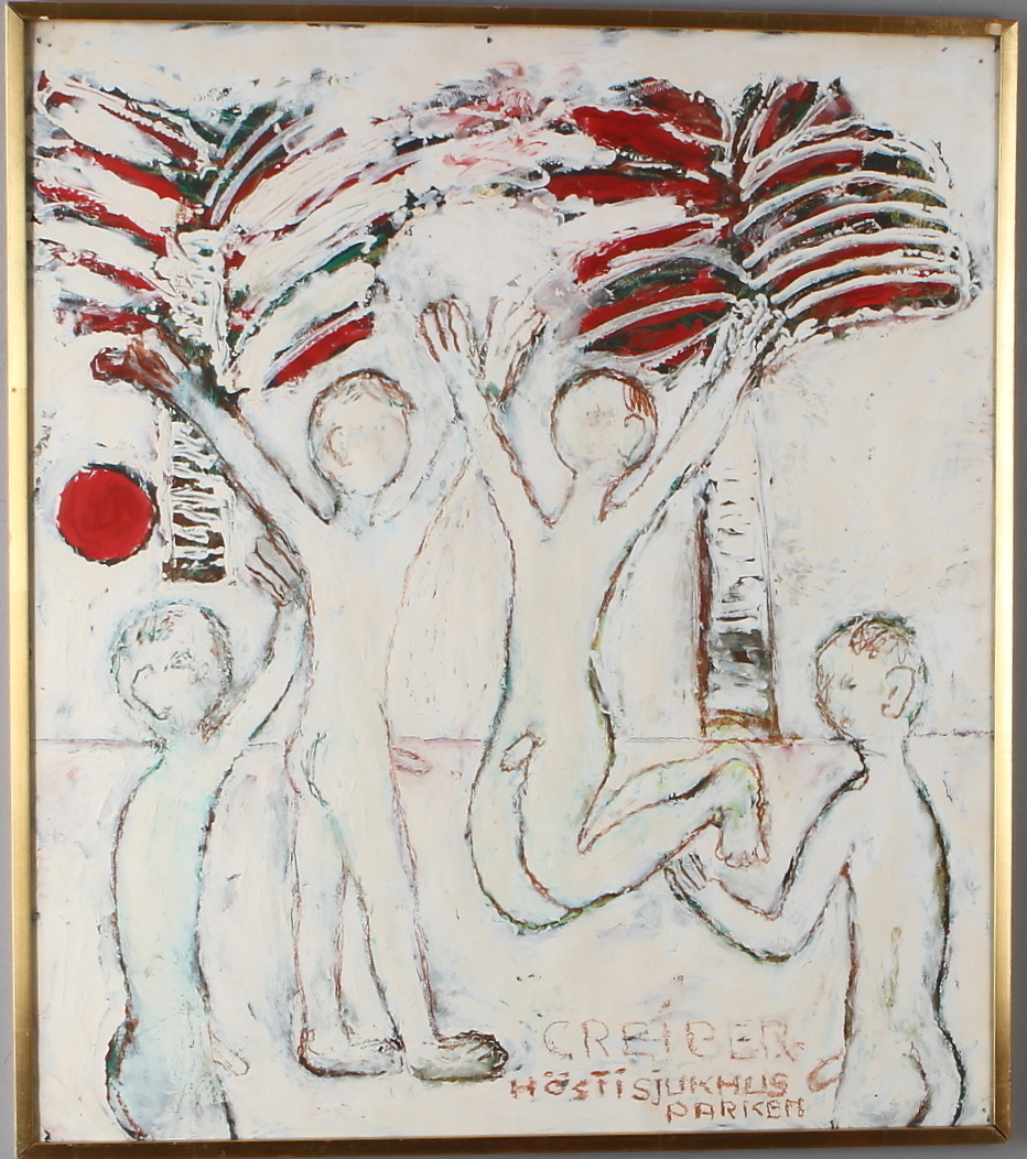 401129. GUNNAR GREIBER. "Efterår i sygehusparken", mixed media, signeret.