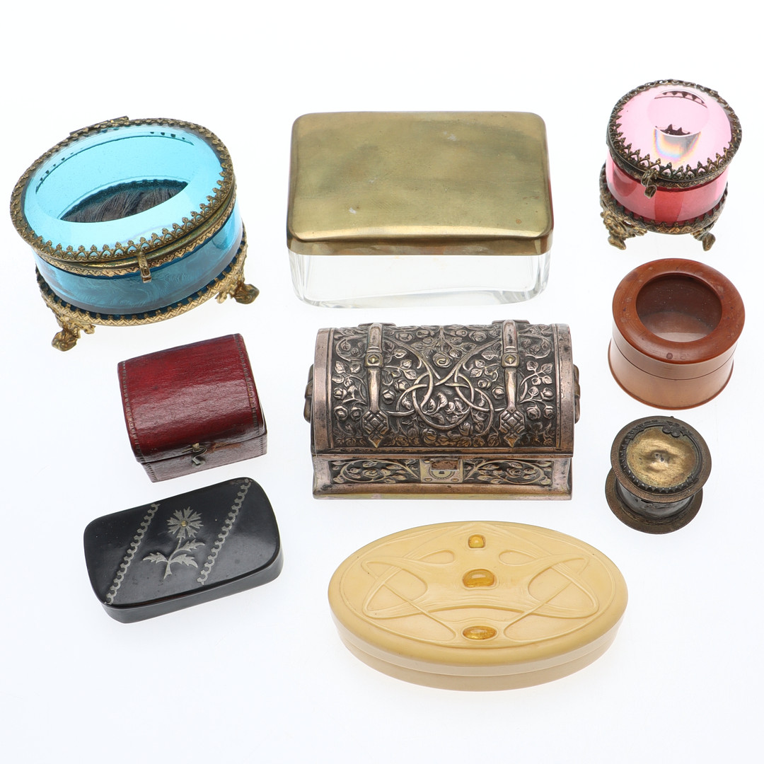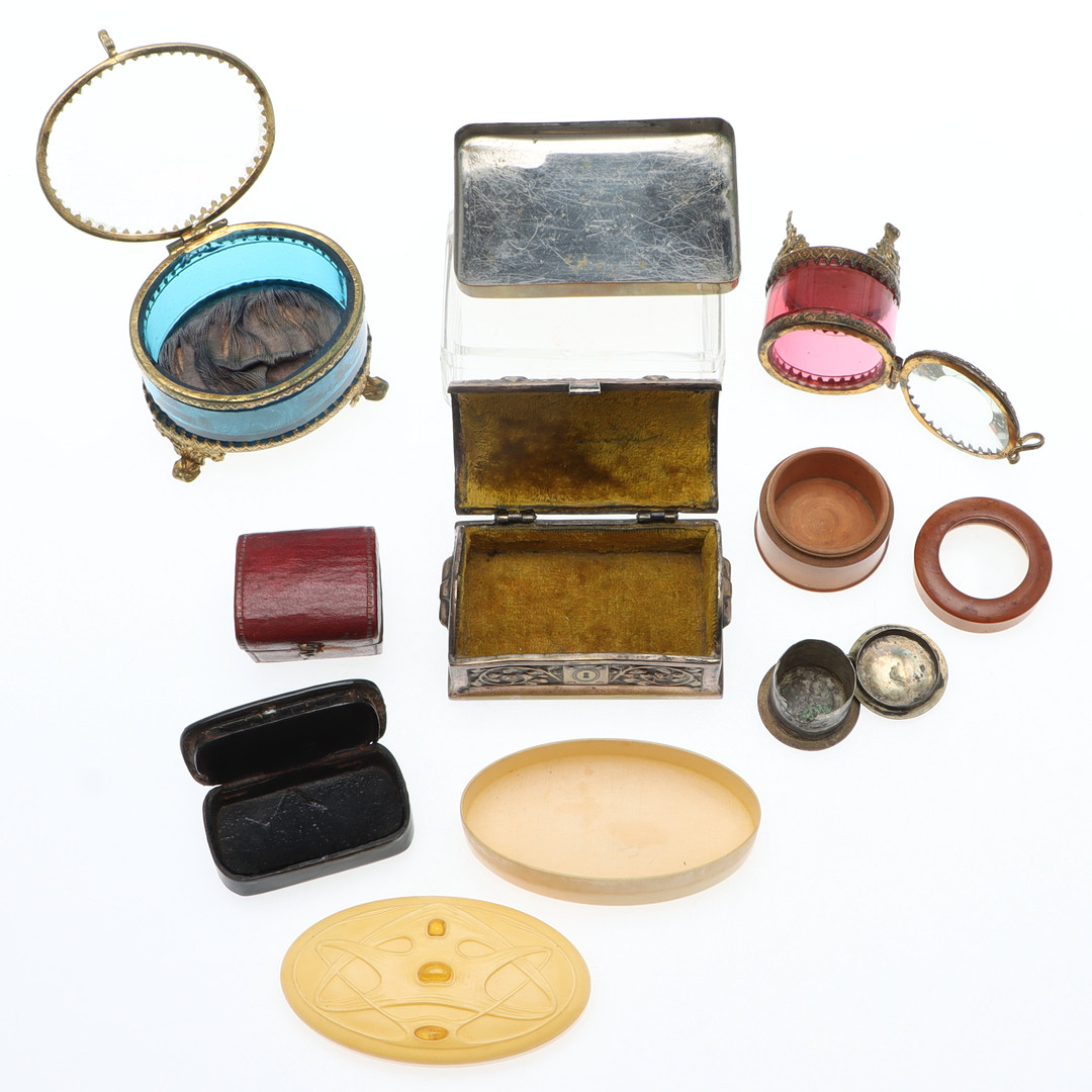 4013437. SMYKKESKRINGER/GÖMOR, 9 stk, inkl. glas.