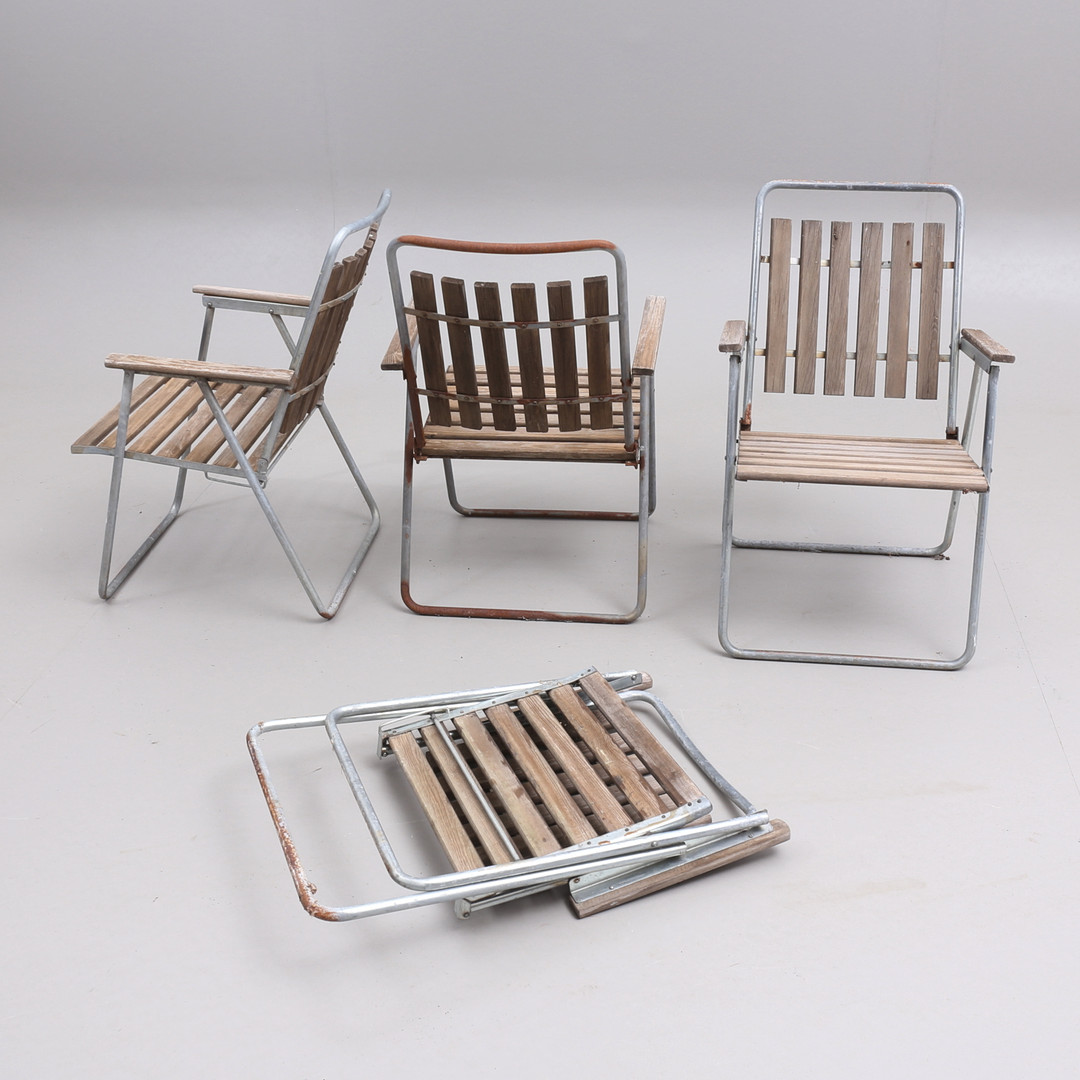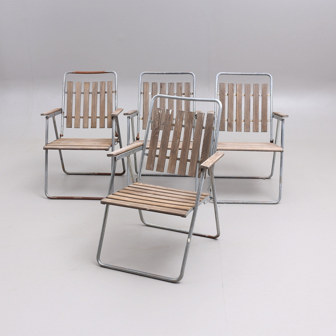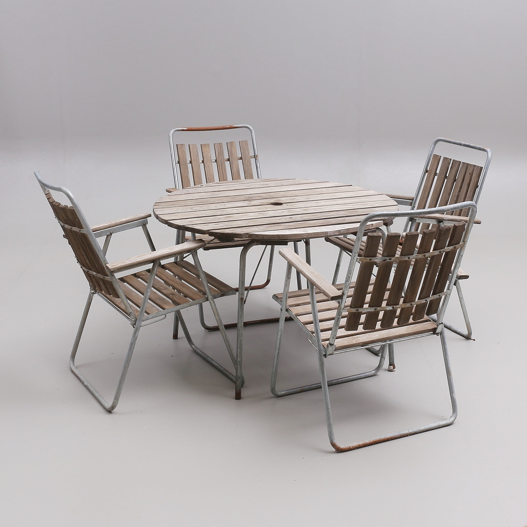 4015629. HAVEMØBLER, 5 dele, stålrør/træ, 20. årh.