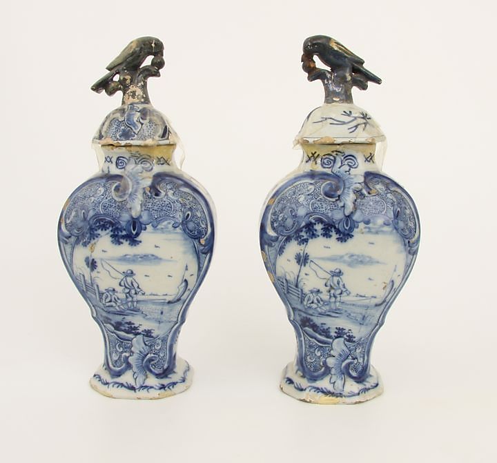 401588. DE WITTE STARRE, DELFT. Et par lågvaser, Delft.