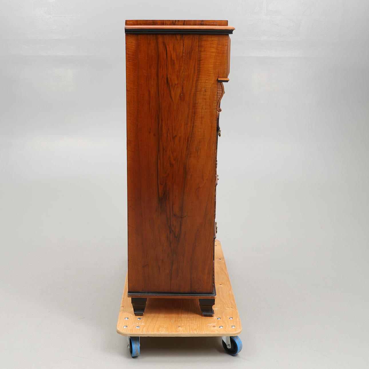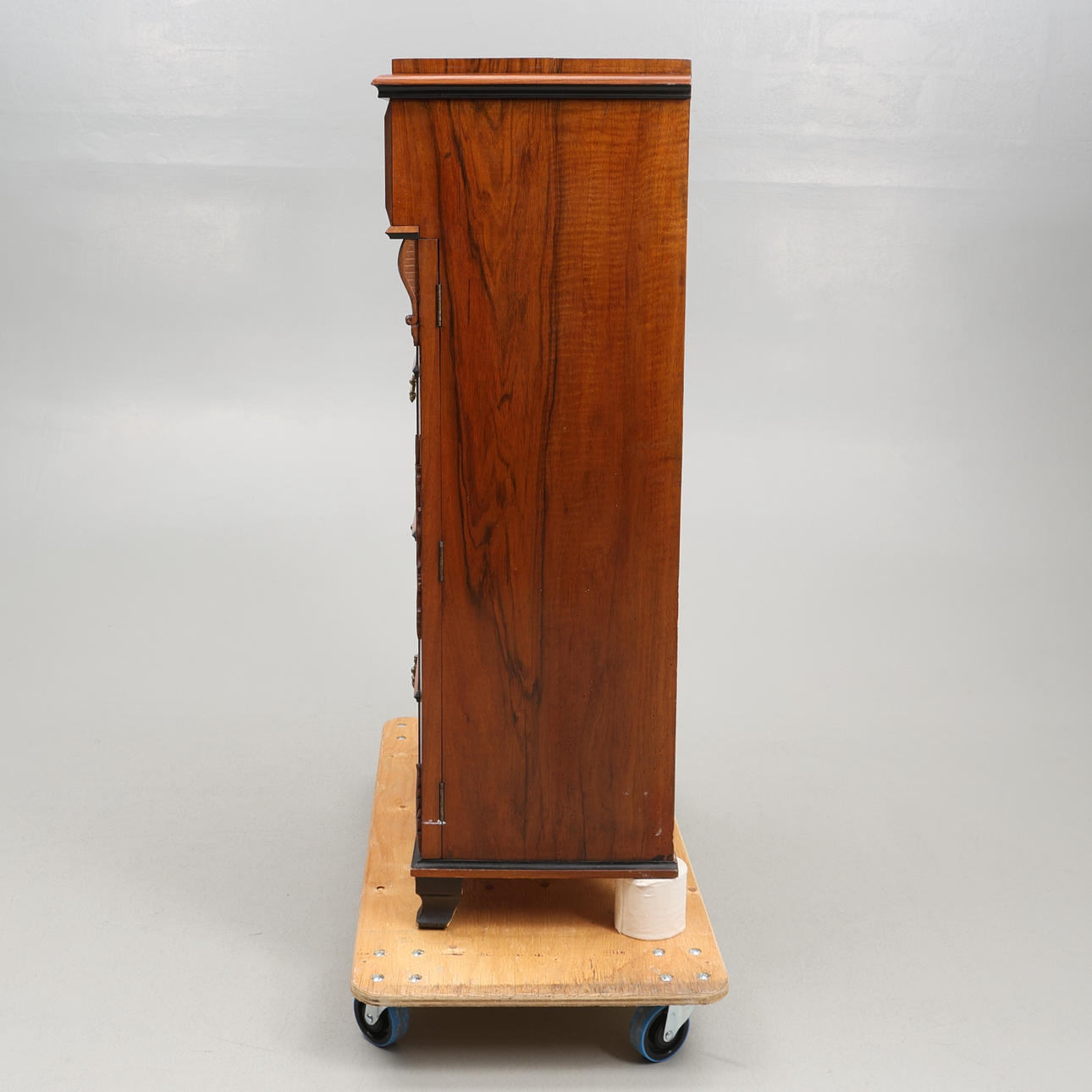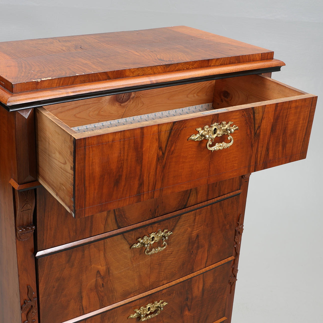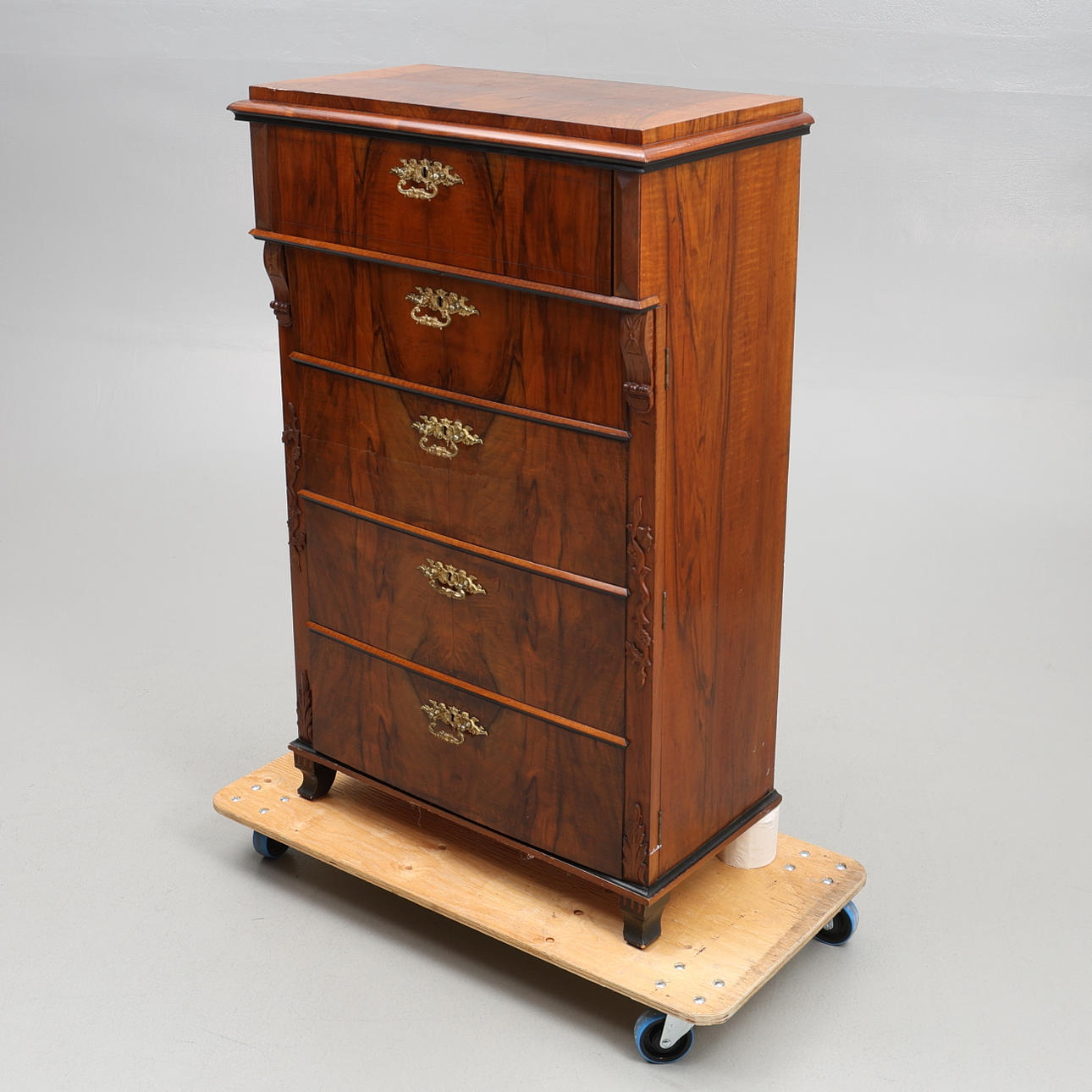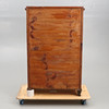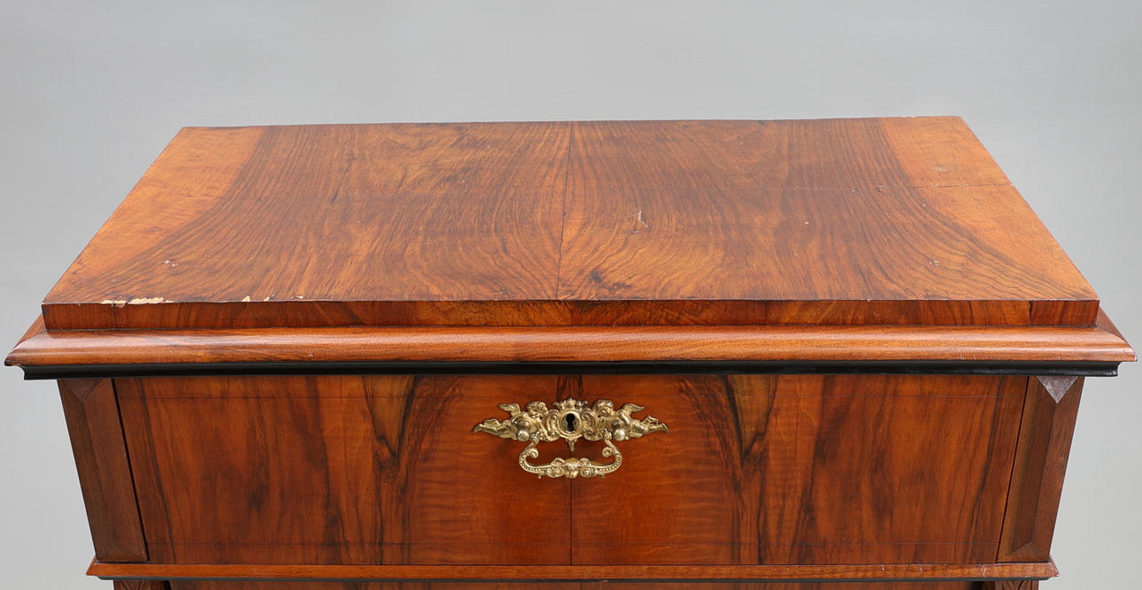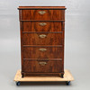 Den øverste skuffe åbnes som en almindelig kasse, mens de resterende skuffer sammen åbnes som et skab.