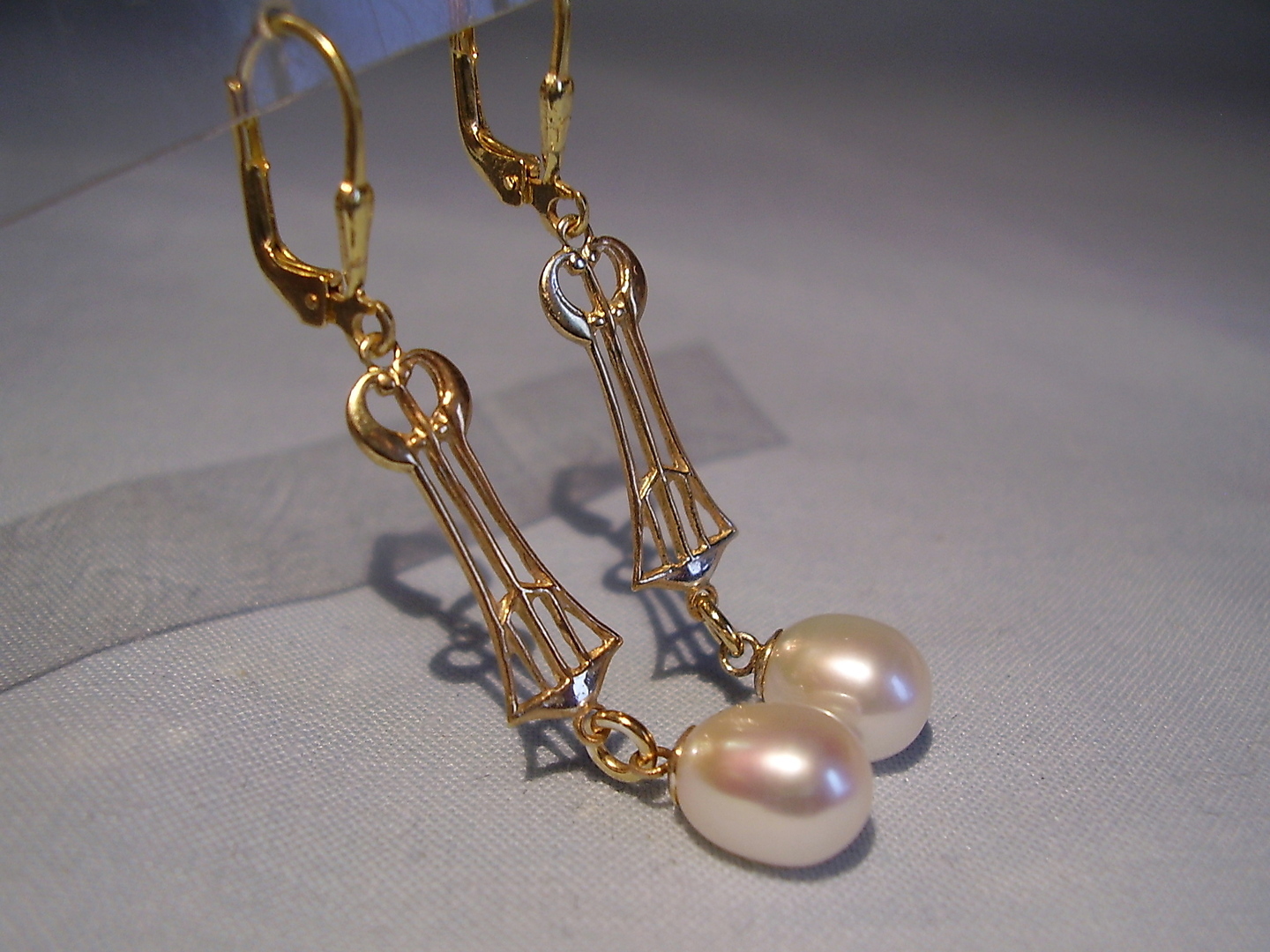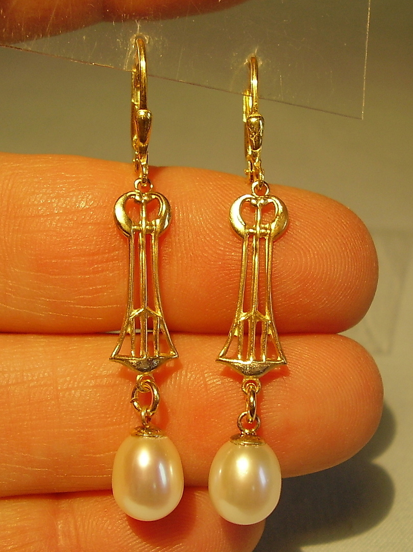401950. PERLE PENDELOQUES ØRERINGE Sølv 925 forgyldt.