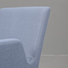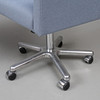 To konferencestole på fem-pass-fødder med hjul. Polstring i lyseblågrå tekstil.