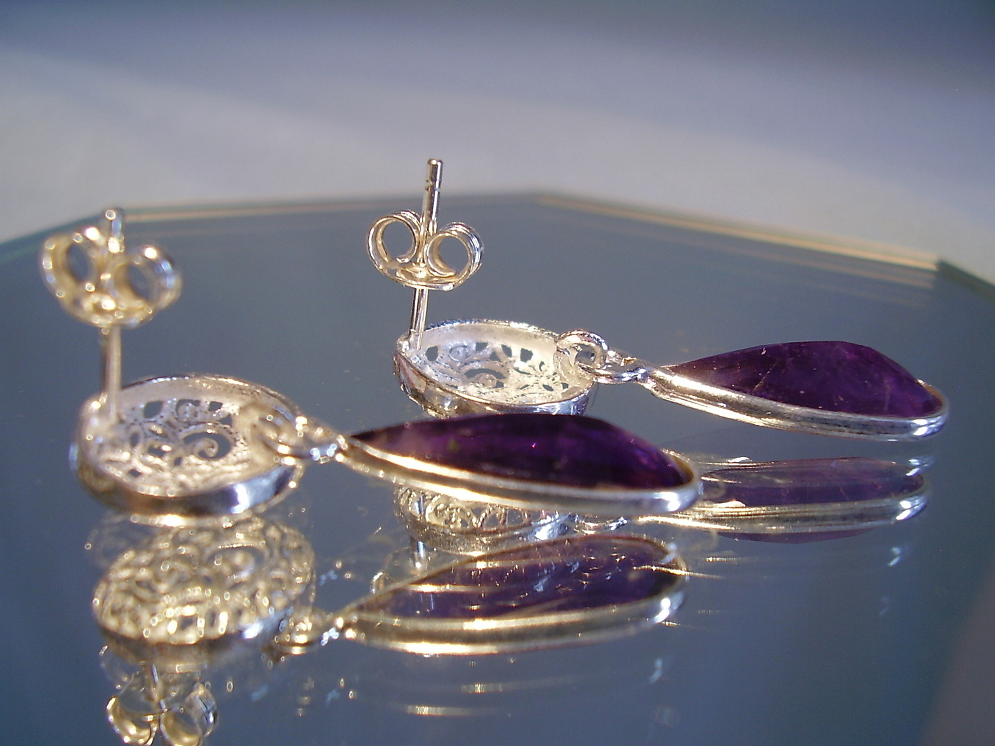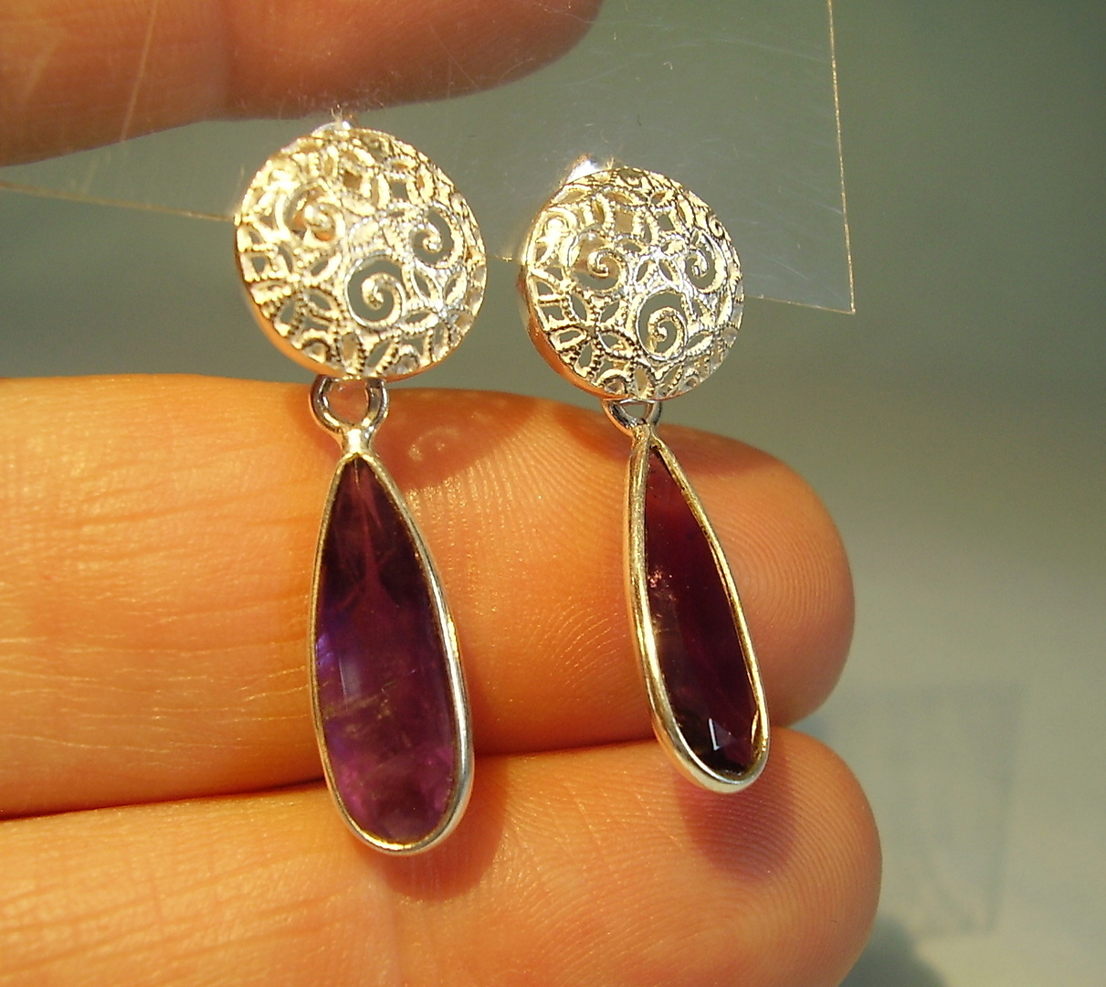 401997. AMETHYST ØRESTØB Håndlavet i sølv 925.