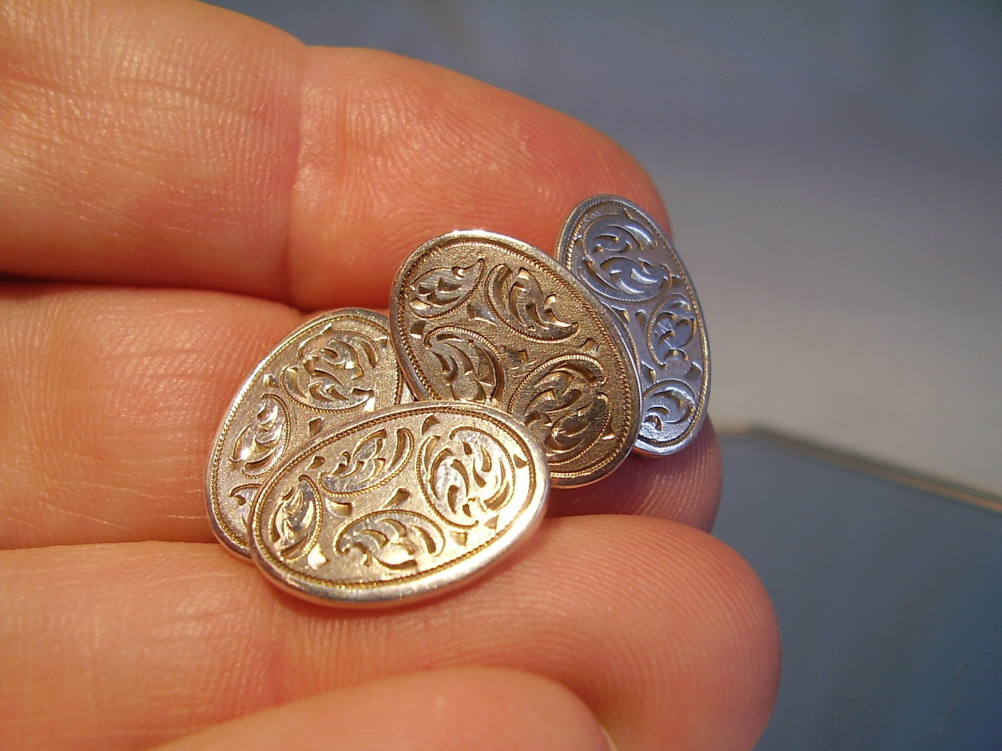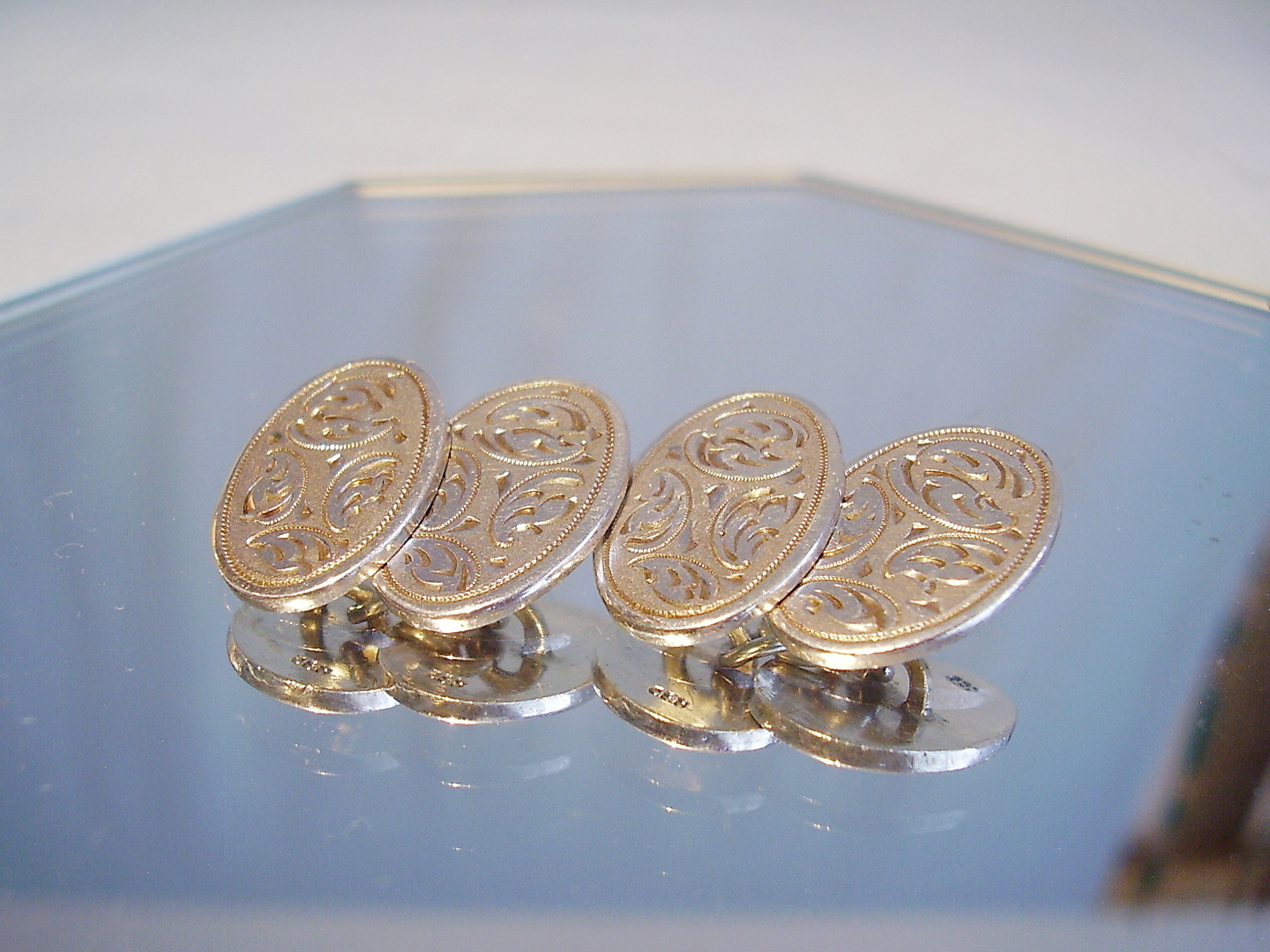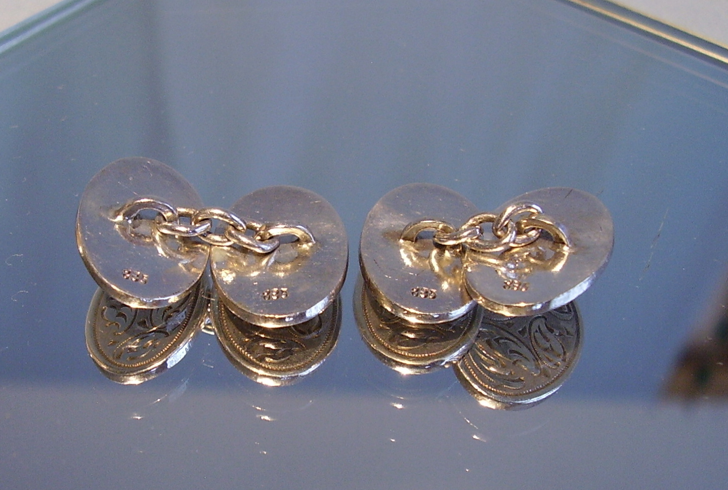 402364. DOBBELT MANCHENTKNAPPE SØLV 835 MED HÅNDGRAVER.