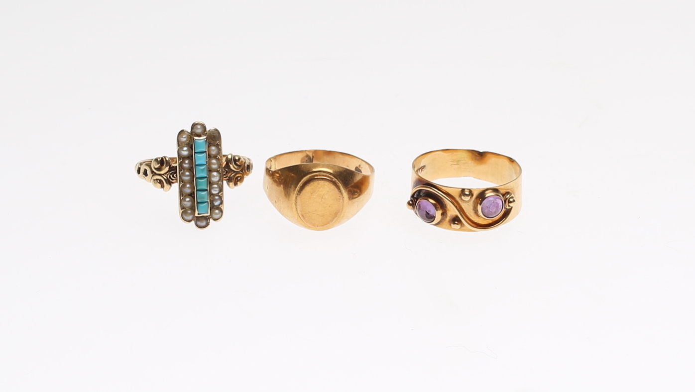 402519. RINGE, 3 stk, guld, 18K og 14K.