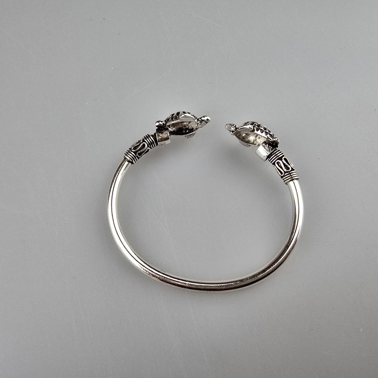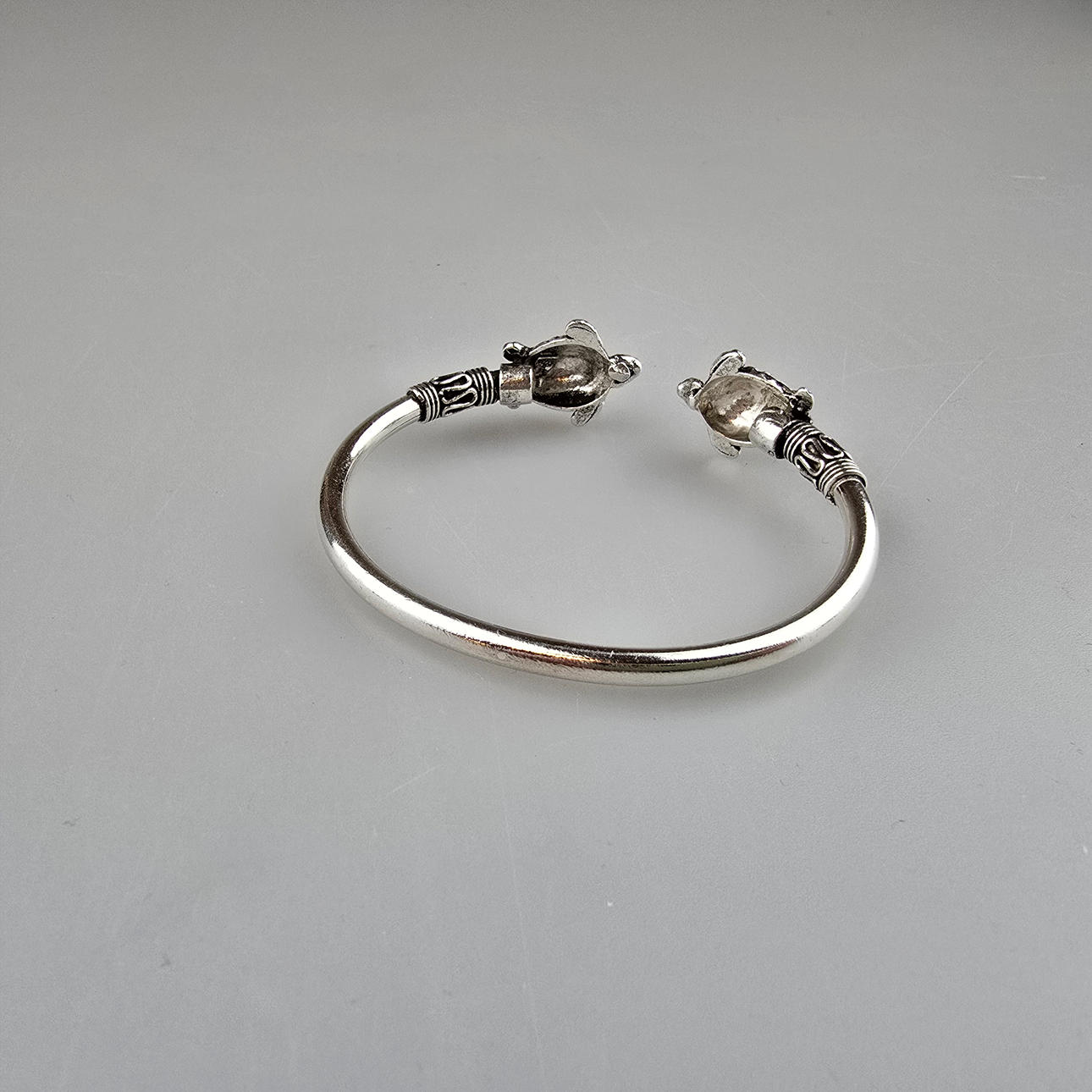 Armring med skildpadder, 925 sølv, vægt: 19,6 gram, fleksibel diameter: 6,0 - 8,0 cm.