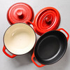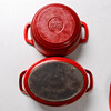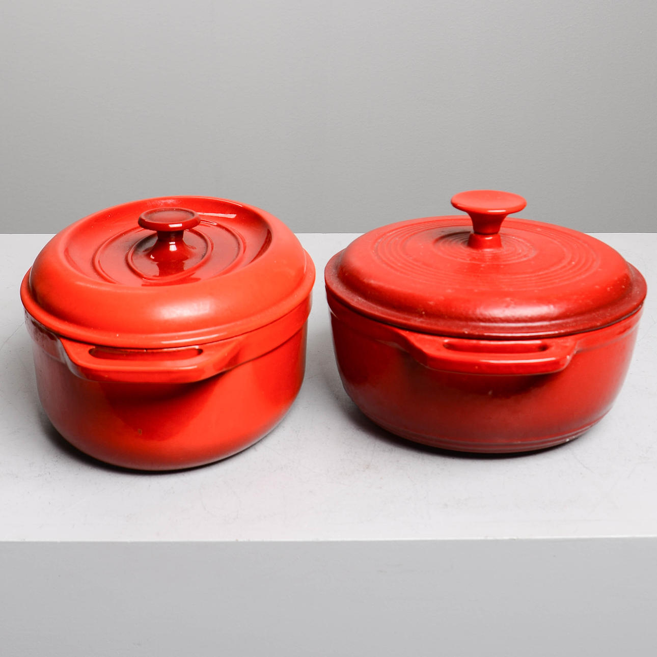 Med låg, rød på ydersiden. Rund gryde mærket „Ernesto“. Oval gryde mærket „Frankrig“ i låget.
