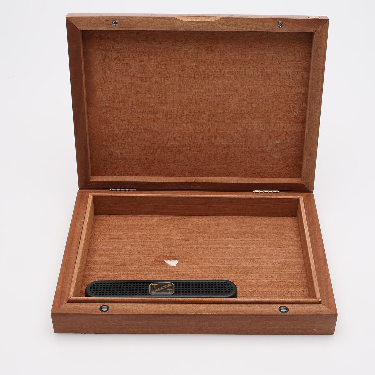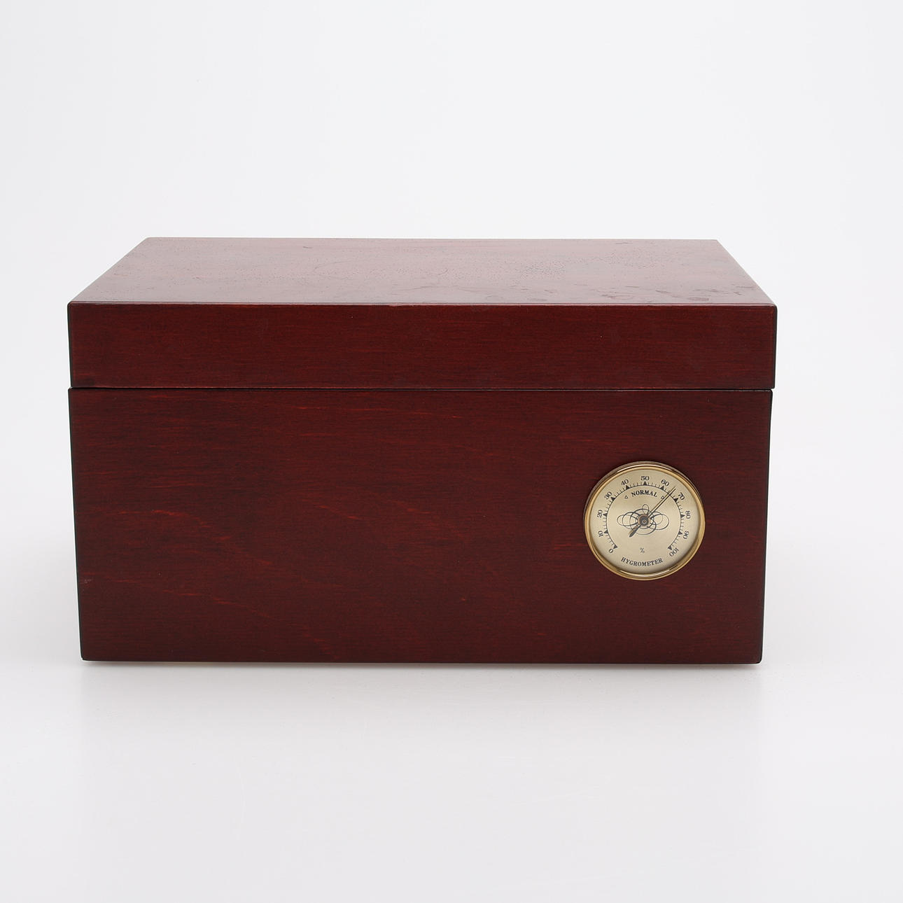 HUMIDOR OG CIGARKASSE, MED HYGROMETER.
