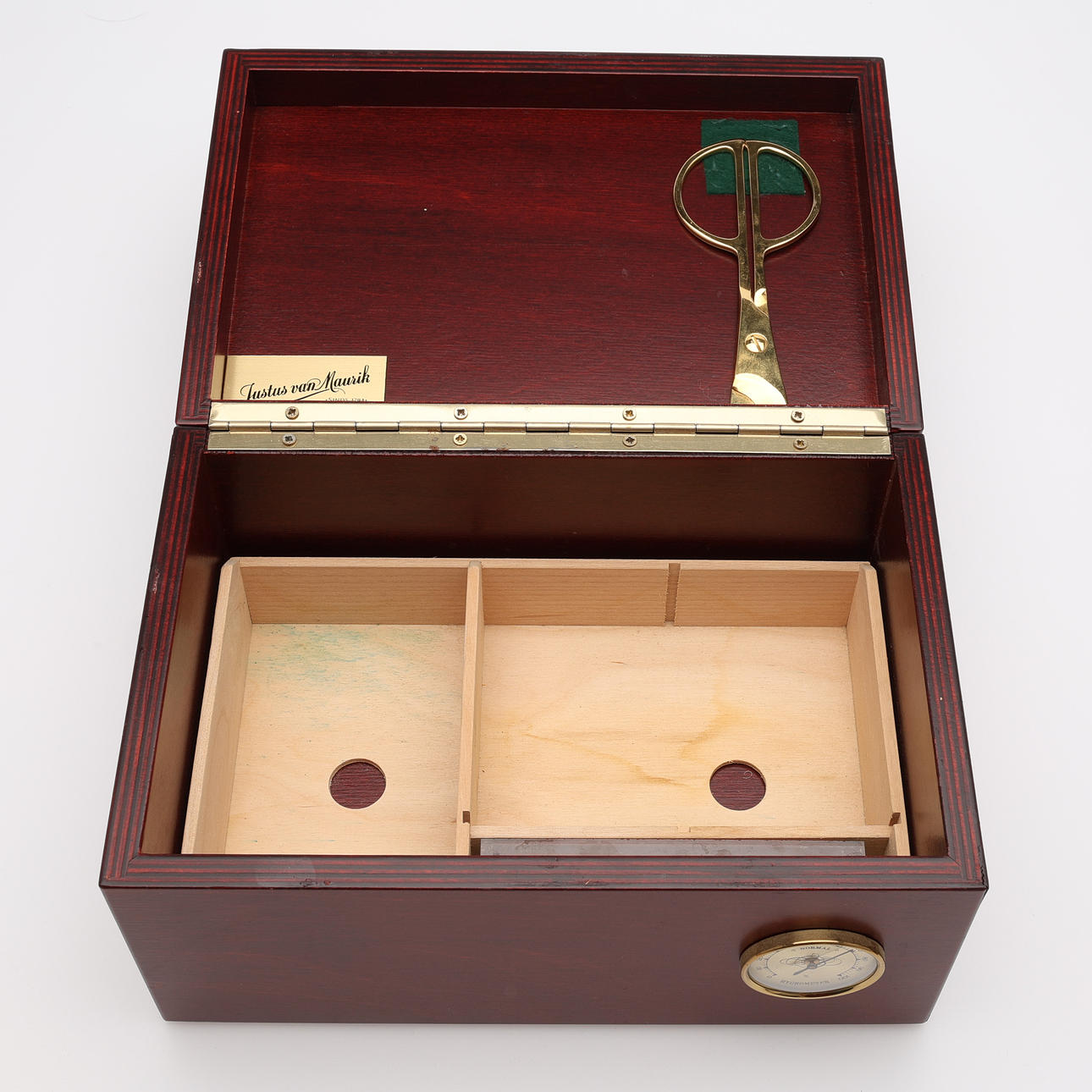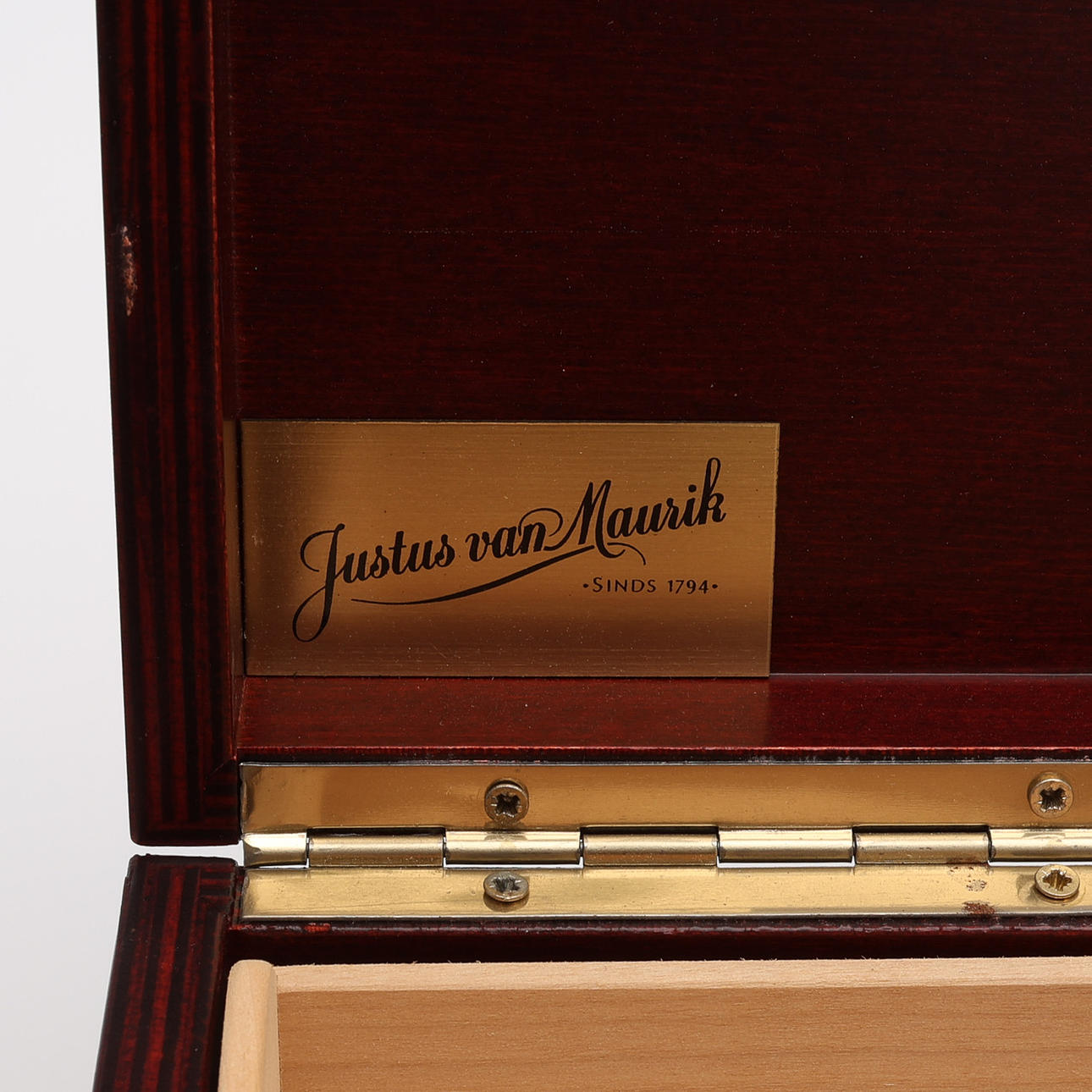 Humidor, Justus van Maurik, med interiør i to niveauer og cigarknapper, 14,5x27x18 cm.