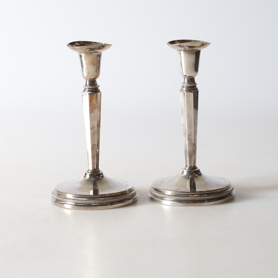 4038594. ERIC LÖFMAN. lysestager, 1 par, sølv, Mema A.B., Linköping, 1990.