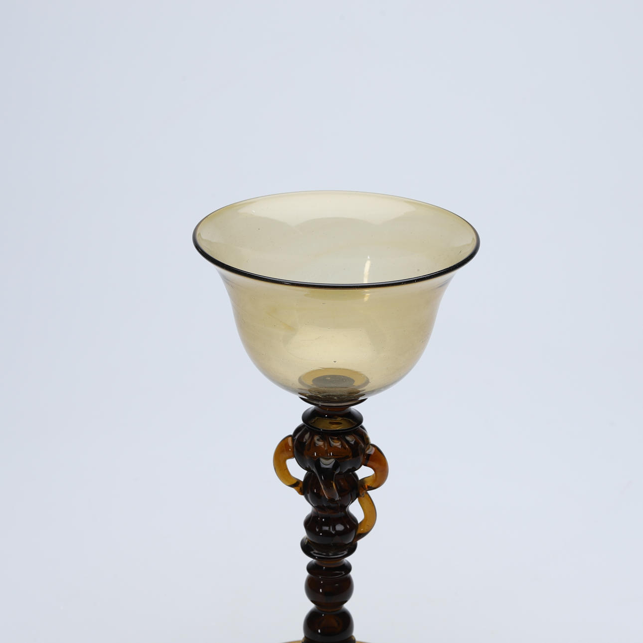 Klokkeformet og foldet fod, benet består af 5 bolde, hvoraf de øverste tre er dekoreret med mortise.