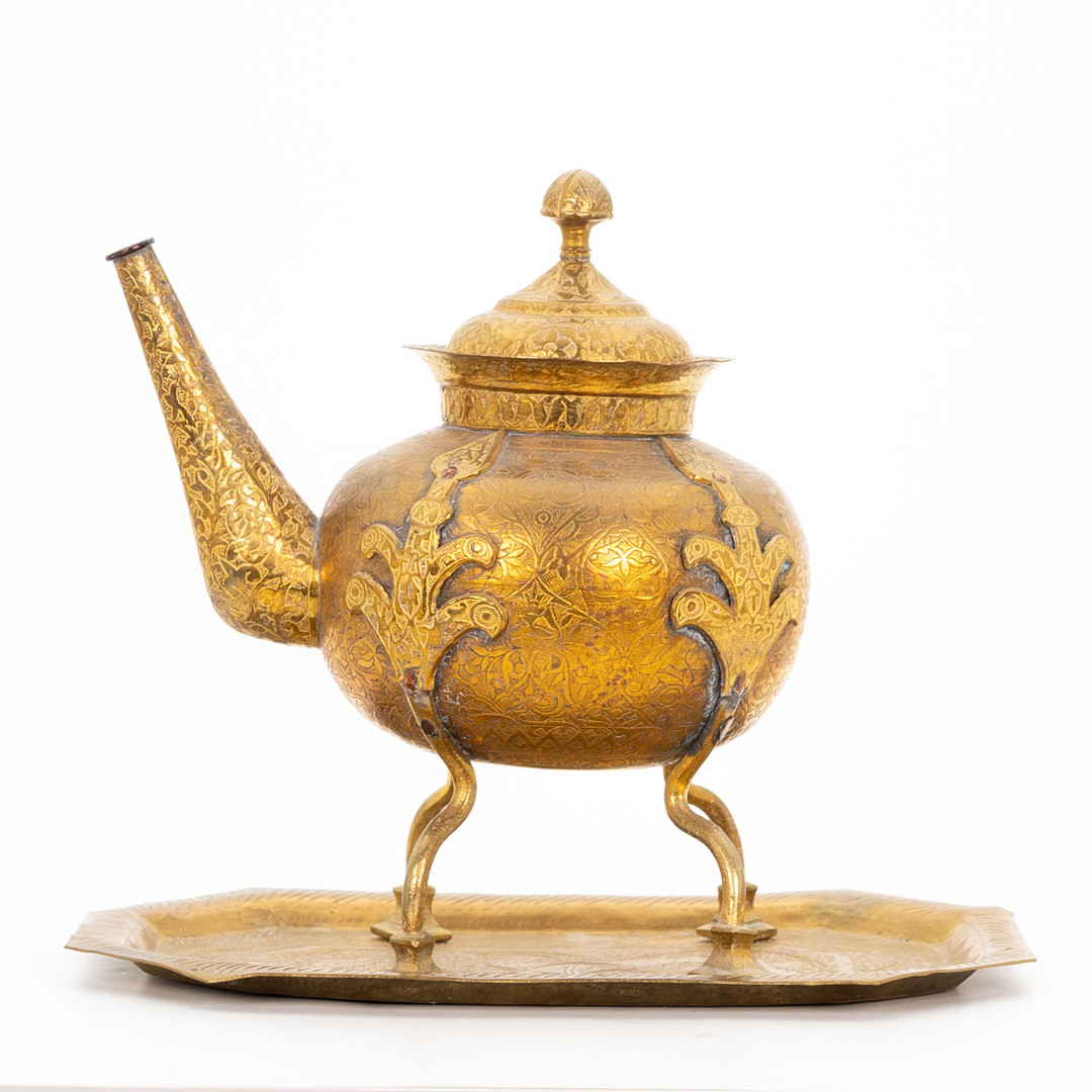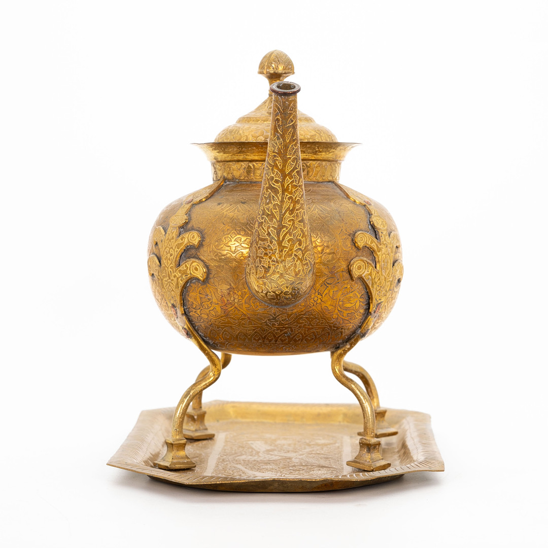 4040537. TEKANDE OG BAKKE, orientalsk, messing, 1900-tallet.