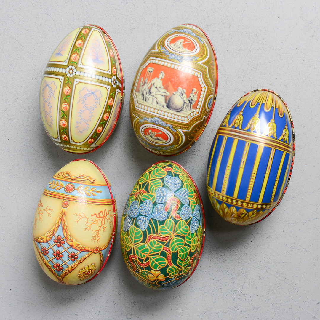 4041243. PÅSKEÆG, 5 stk, metal, bl.a. England.