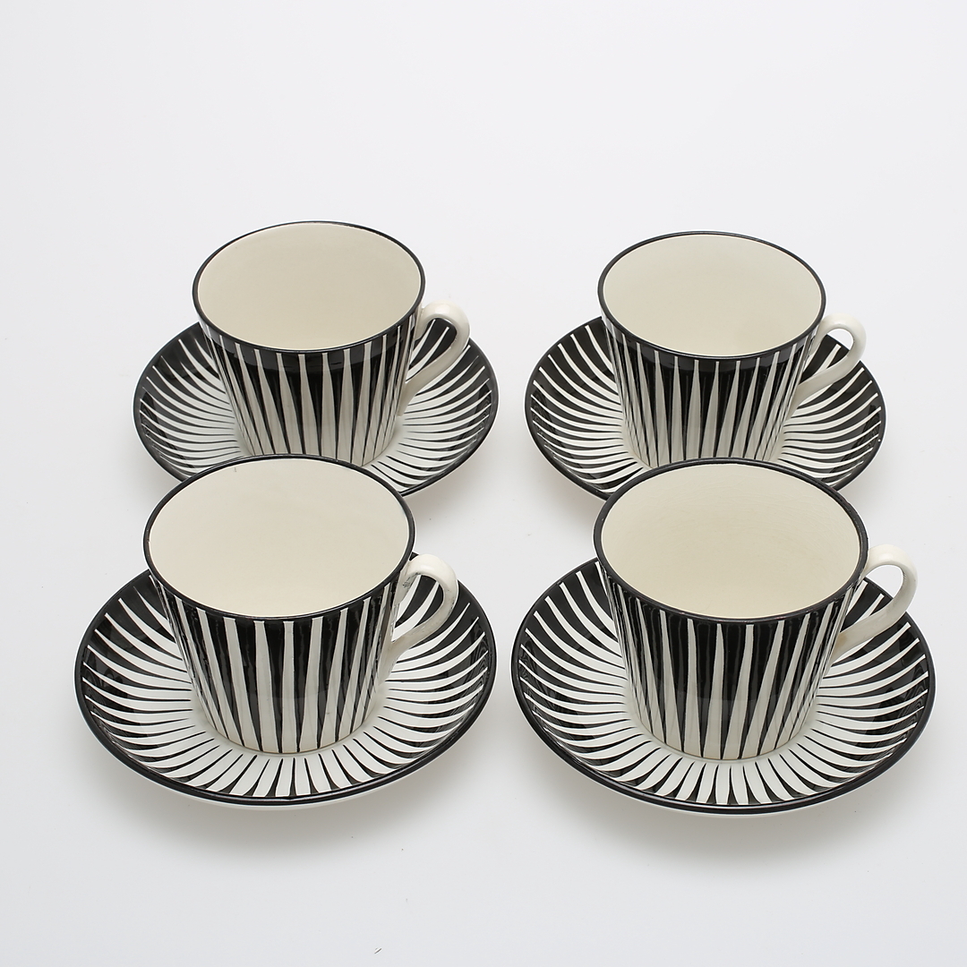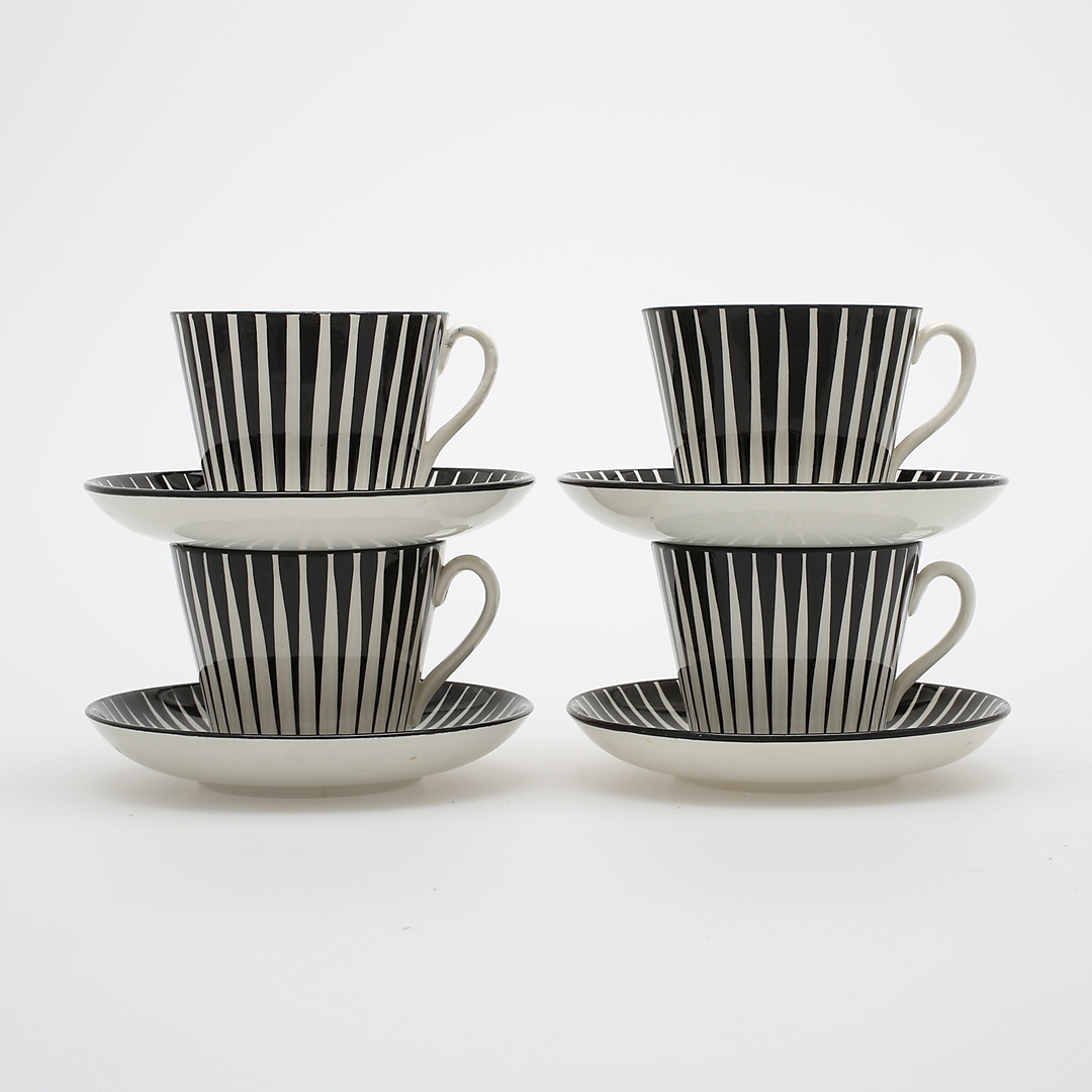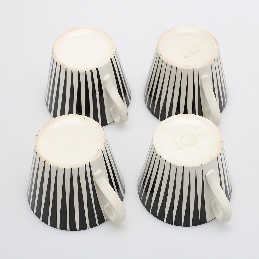 404213. EUGEN TROST. "Zebra", tekopper med underkopper, 8 dele, Upsala-Ekeby.