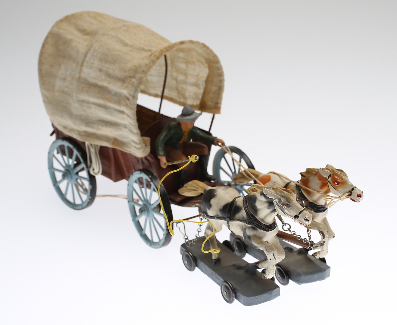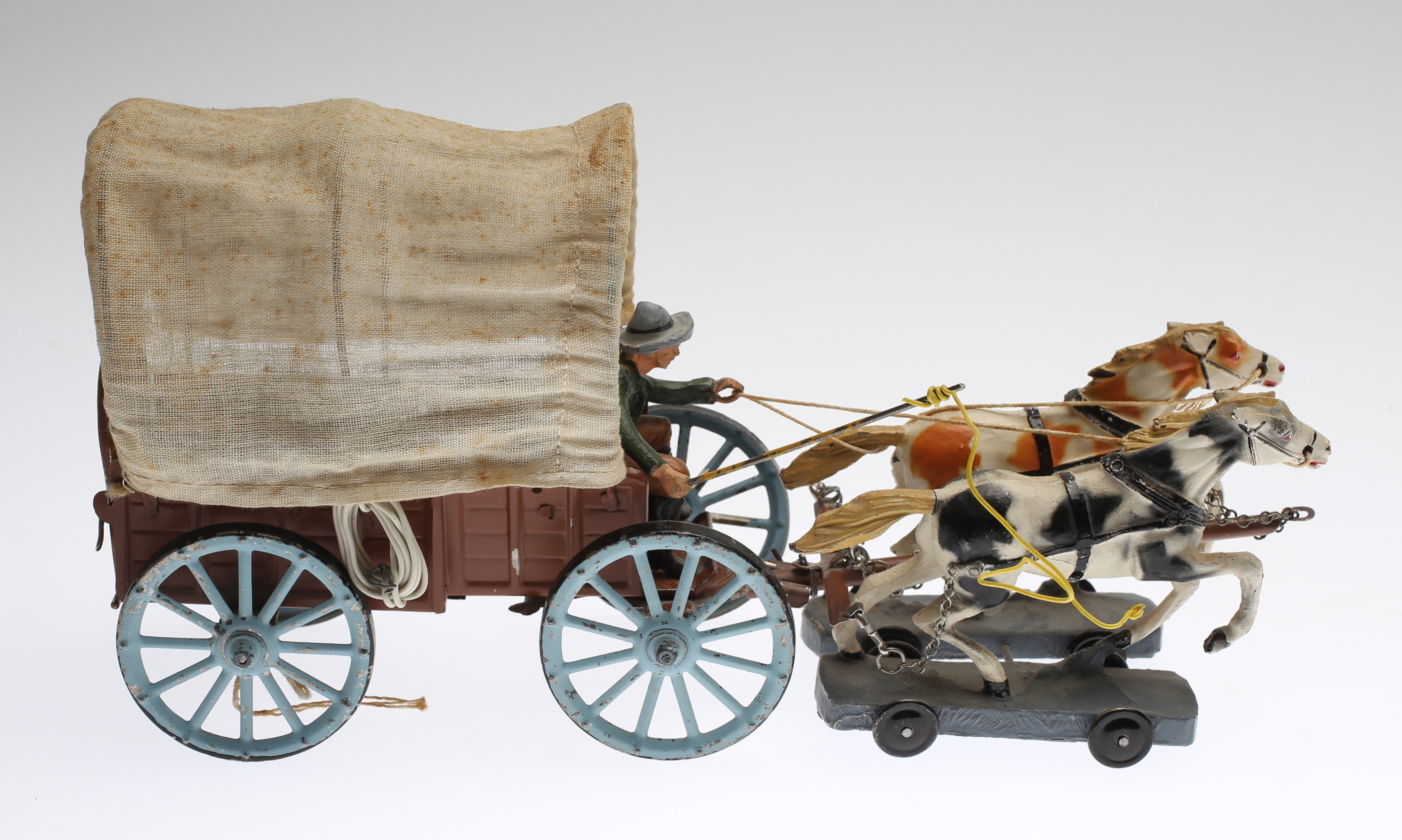 404562. COWBOY WAGON, tin/elastolin, midten af det 20. århundrede.