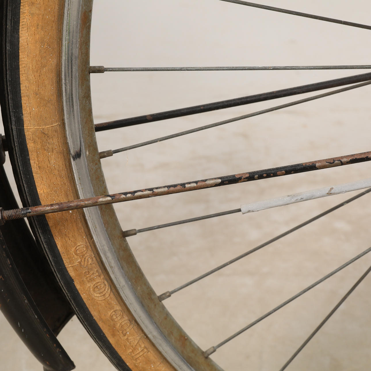 Brugsslitage samt skader. Ingen luft i dækkene.