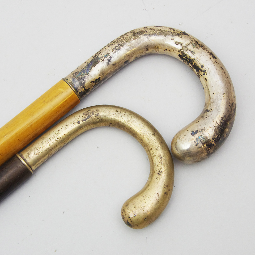 405121. STØJER, 2 stk med sølvkrykker.