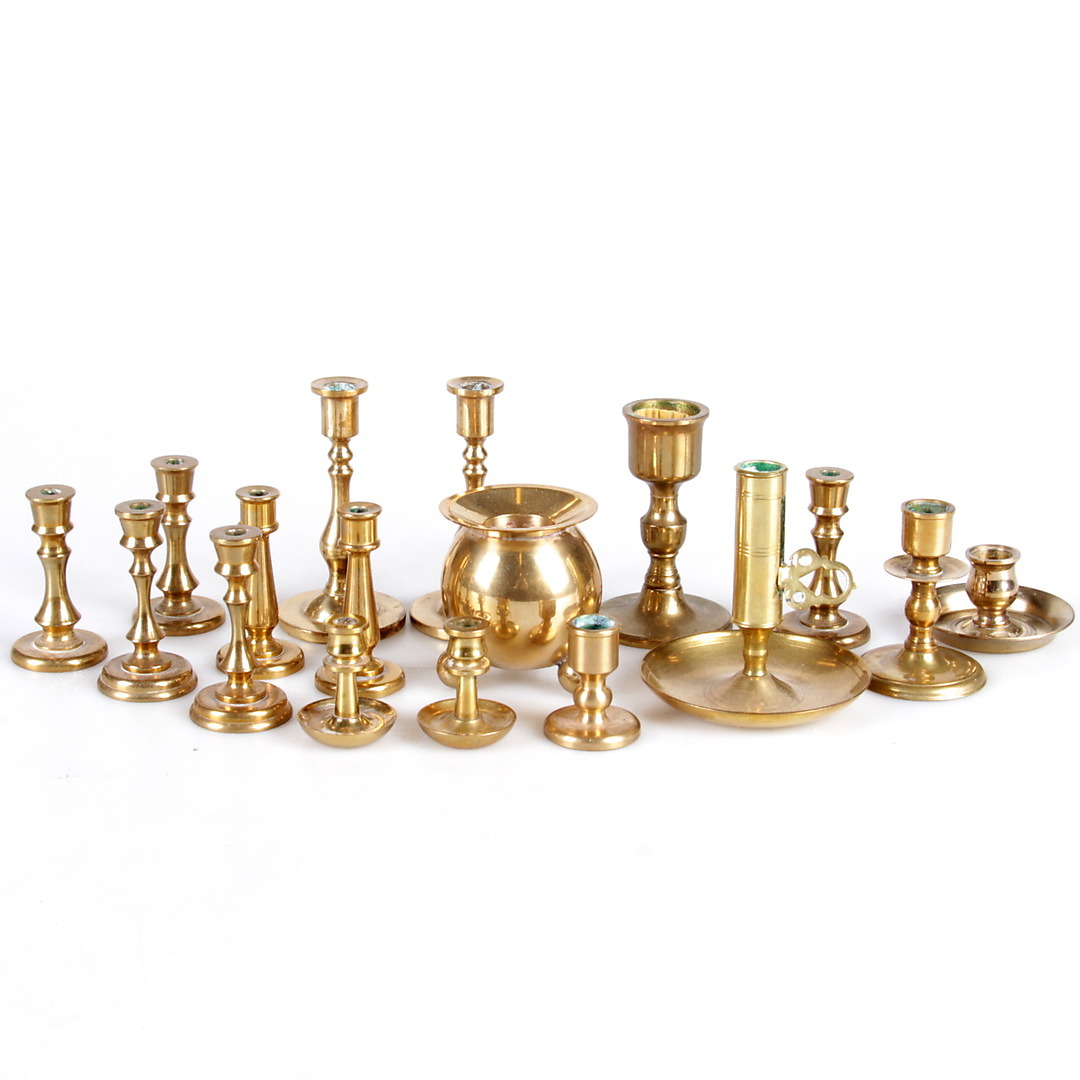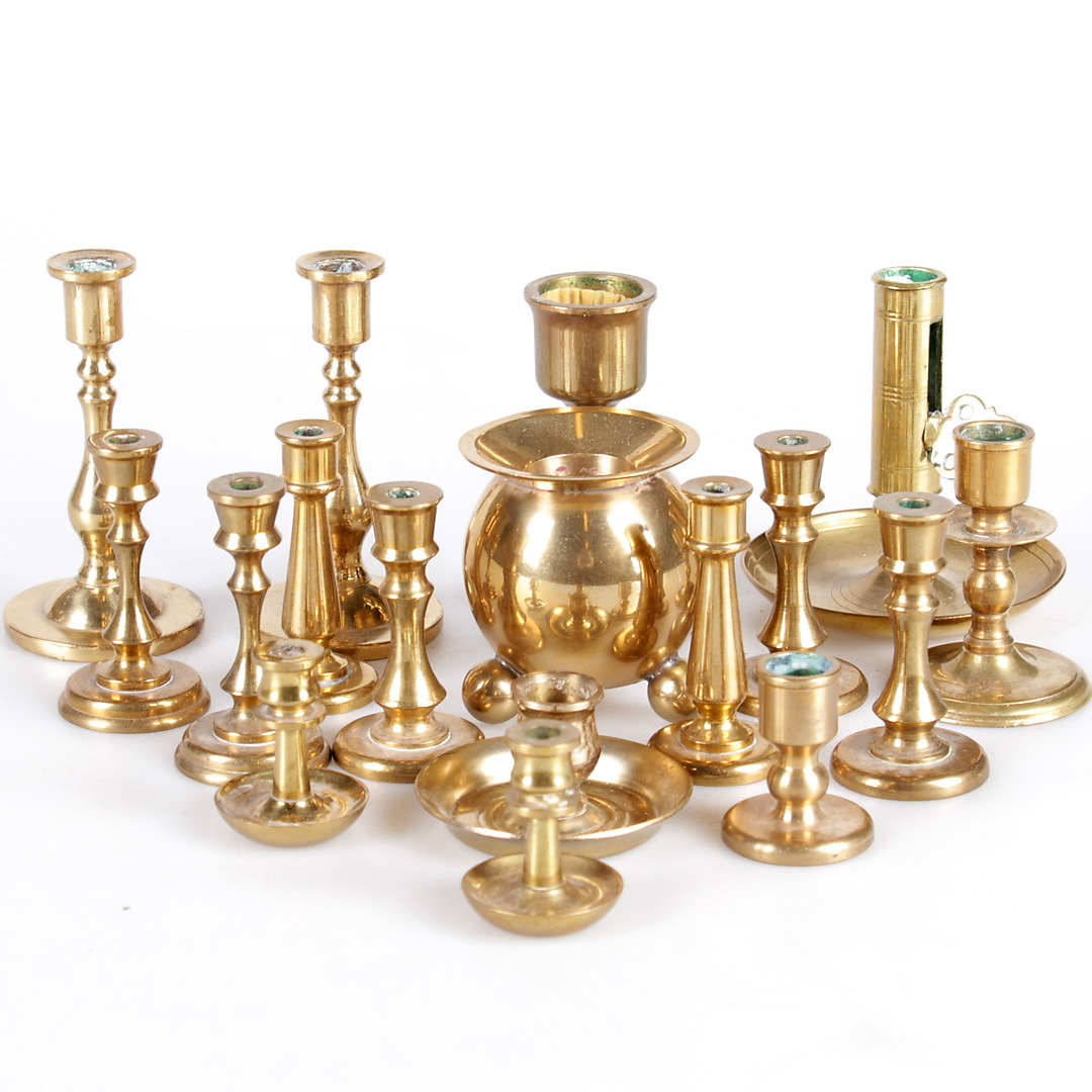 405550. Lysestager, 17 stk. Messing, 20. århundrede.