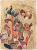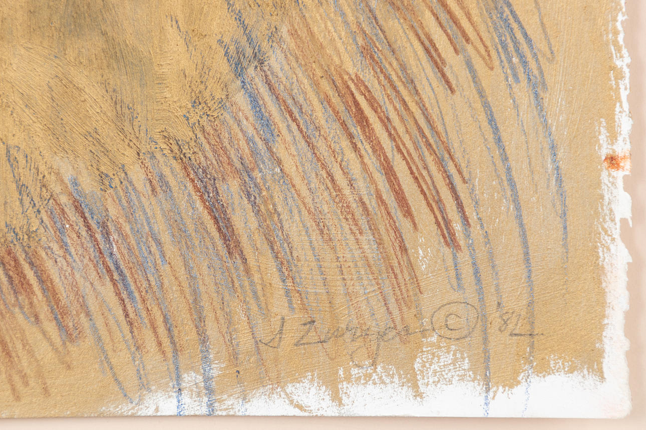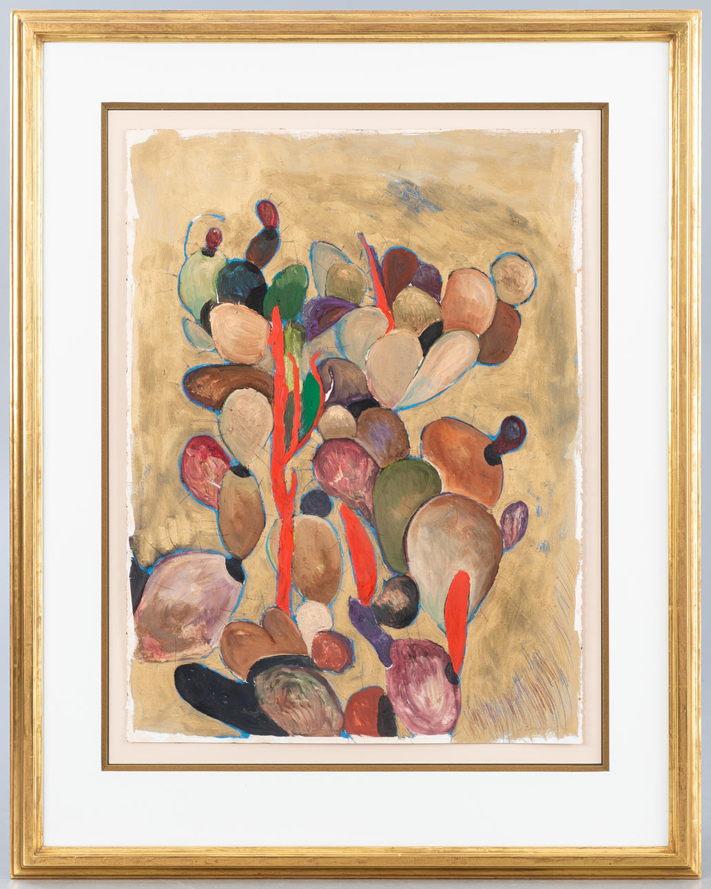 Susan Zwinger, kaktuslandskab, olie på papir, 1982, signeret, dateret og indskrevet nederst til højre, ca. 76,5 x 56,5 cm, i passepartout og indrammet bag glas, ca. 108 x 86 cm.