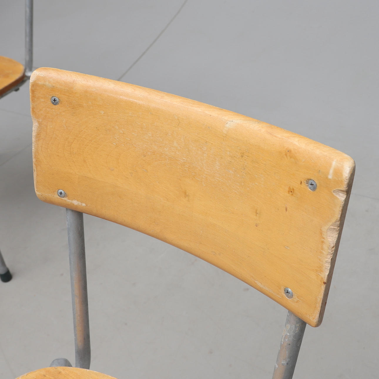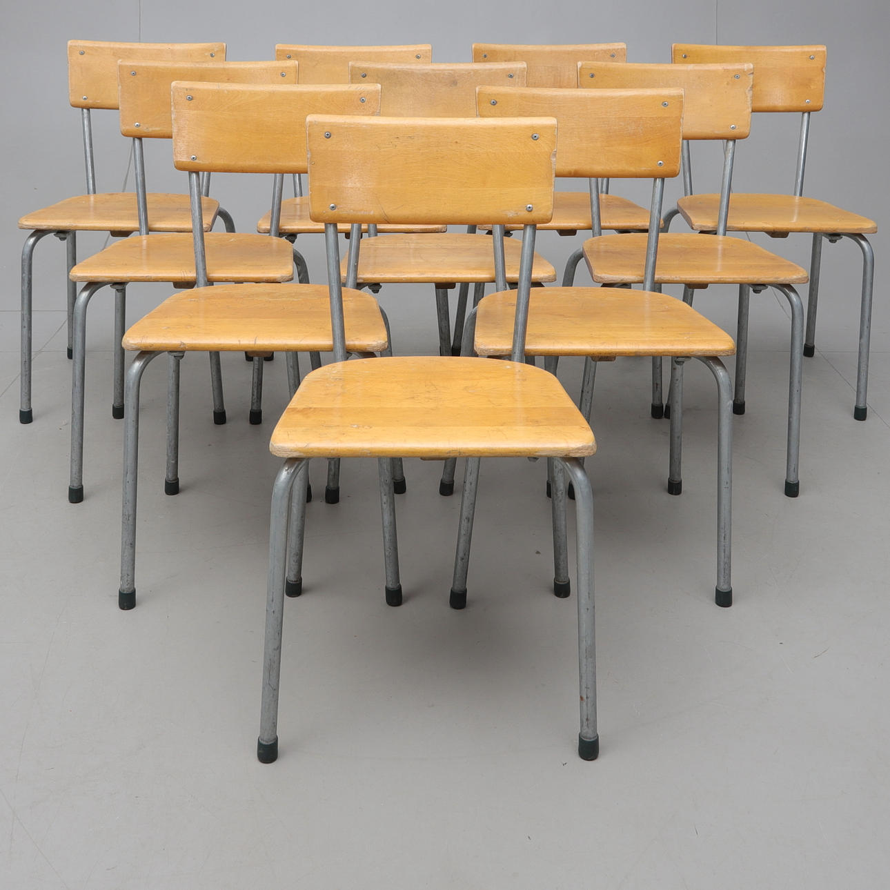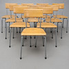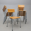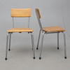 Højde ca 79cm, sædehøjde ca 44cm, længde ca 47cm, bredde ca. 45cm. Stabelbar, stemplet.
