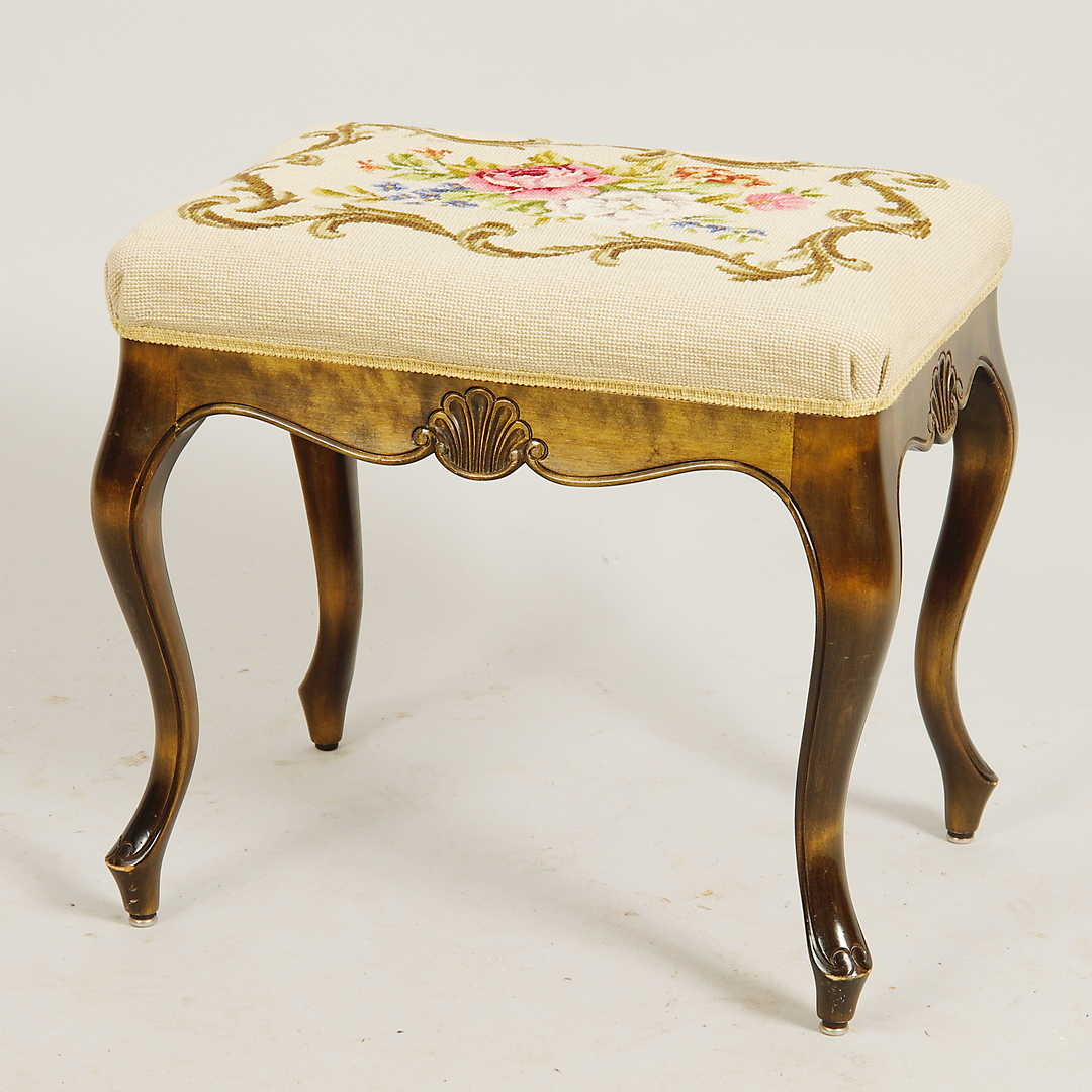 405625. Taburet, birk med broderet sæde, rokoko stil.