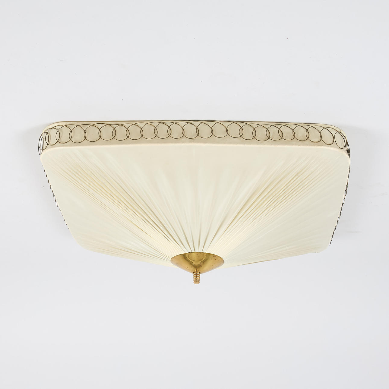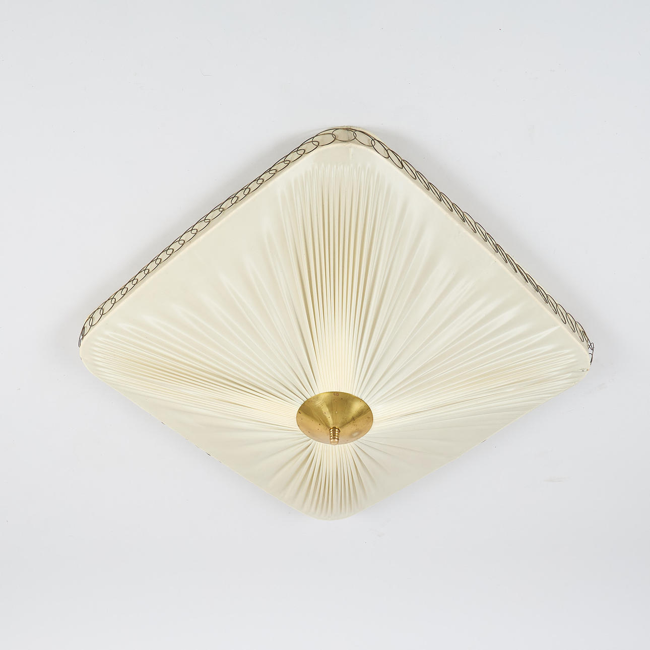 Skærm lavet af plisseret plast, messingdekorationer, 3 lyspunkter. 62 x62 cm, højde ca. 25 cm.