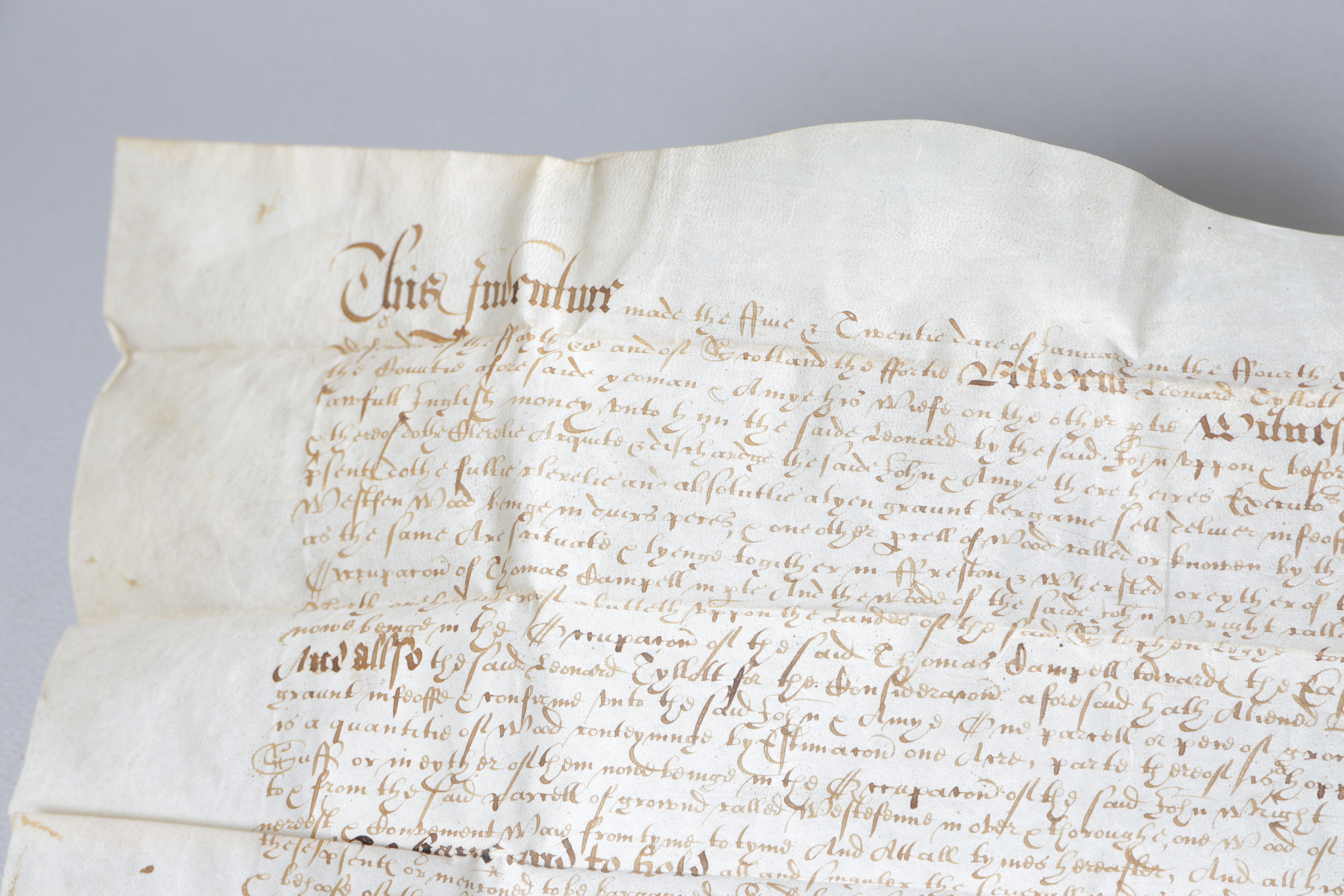 4061414. JAMES I MANUSKRIPT INDENTURE, OMKRING 1607.