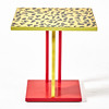 Mønstret foliebordplade, på lakeret stål og træben, højde 73, 70,5x60,5 cm.