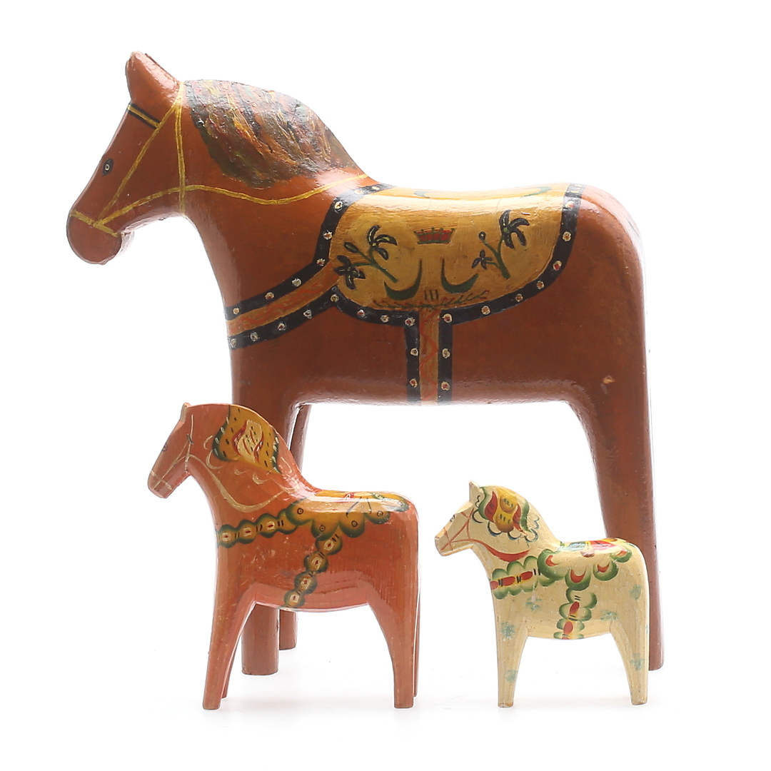 406344. DALAH HESTE, 3 stk., træ, 1900-tallet.